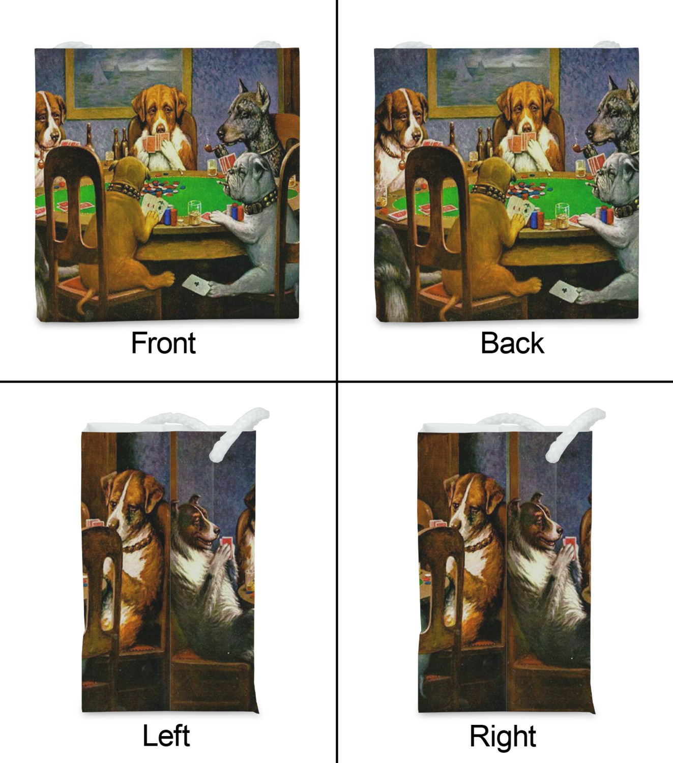 Dogs Playing Poker refers collectively to an 1894 painting, a series of sixteen oil paintings, and a 1910 painting by Cassius Marcellus Coolidge. Brown & Bigelow commissioned the 16 painting series in 1903 to advertise cigars. All eighteen paintings in the series feature personified dogs, but the eleven in which dogs are seated around a card table have become well known in the United States as examples of Kitsch art in home decoration. Source: Wikipedia
