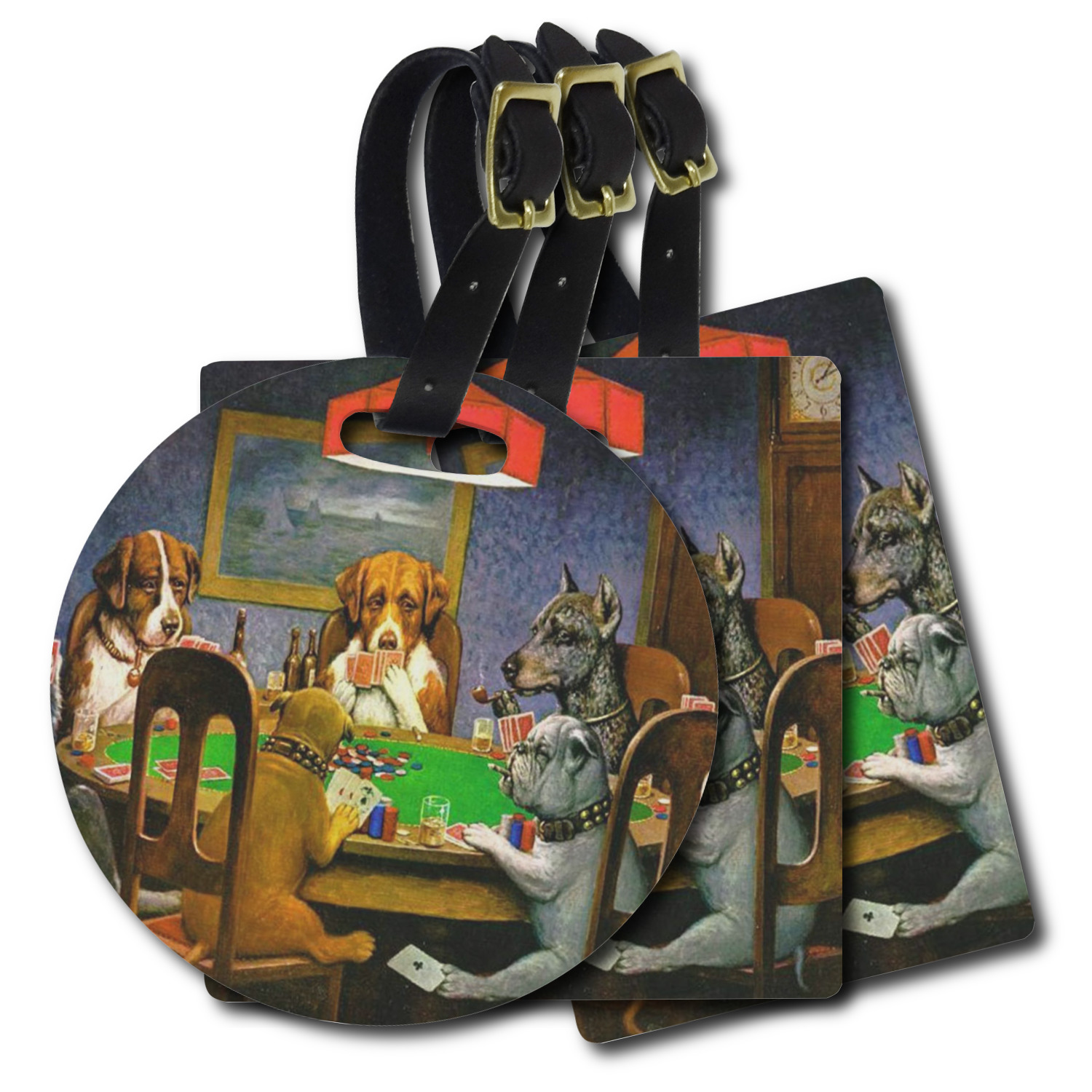 Dogs Playing Poker refers collectively to an 1894 painting, a series of sixteen oil paintings, and a 1910 painting by Cassius Marcellus Coolidge. Brown & Bigelow commissioned the 16 painting series in 1903 to advertise cigars. All eighteen paintings in the series feature personified dogs, but the eleven in which dogs are seated around a card table have become well known in the United States as examples of Kitsch art in home decoration. Source: Wikipedia