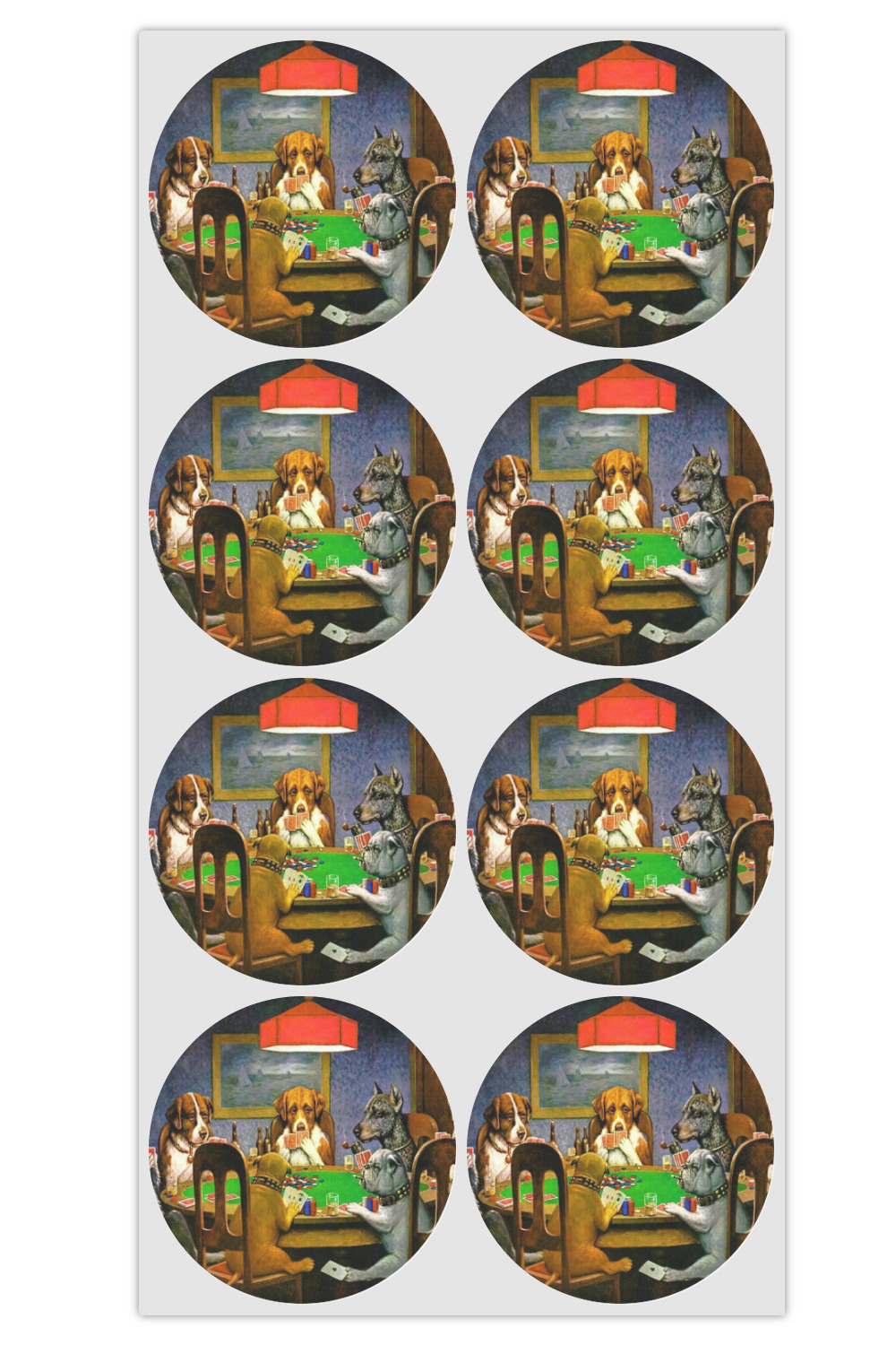 Dogs Playing Poker refers collectively to an 1894 painting, a series of sixteen oil paintings, and a 1910 painting by Cassius Marcellus Coolidge. Brown & Bigelow commissioned the 16 painting series in 1903 to advertise cigars. All eighteen paintings in the series feature personified dogs, but the eleven in which dogs are seated around a card table have become well known in the United States as examples of Kitsch art in home decoration. Source: Wikipedia