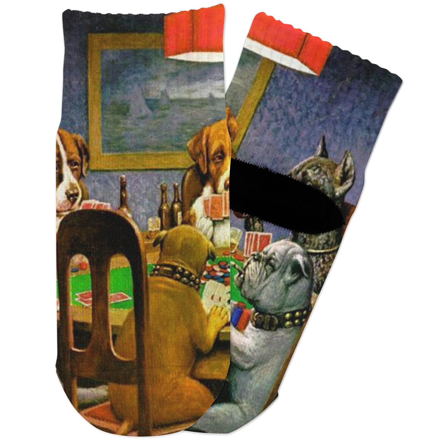 Dogs Playing Poker refers collectively to an 1894 painting, a series of sixteen oil paintings, and a 1910 painting by Cassius Marcellus Coolidge. Brown & Bigelow commissioned the 16 painting series in 1903 to advertise cigars. All eighteen paintings in the series feature personified dogs, but the eleven in which dogs are seated around a card table have become well known in the United States as examples of Kitsch art in home decoration. Source: Wikipedia