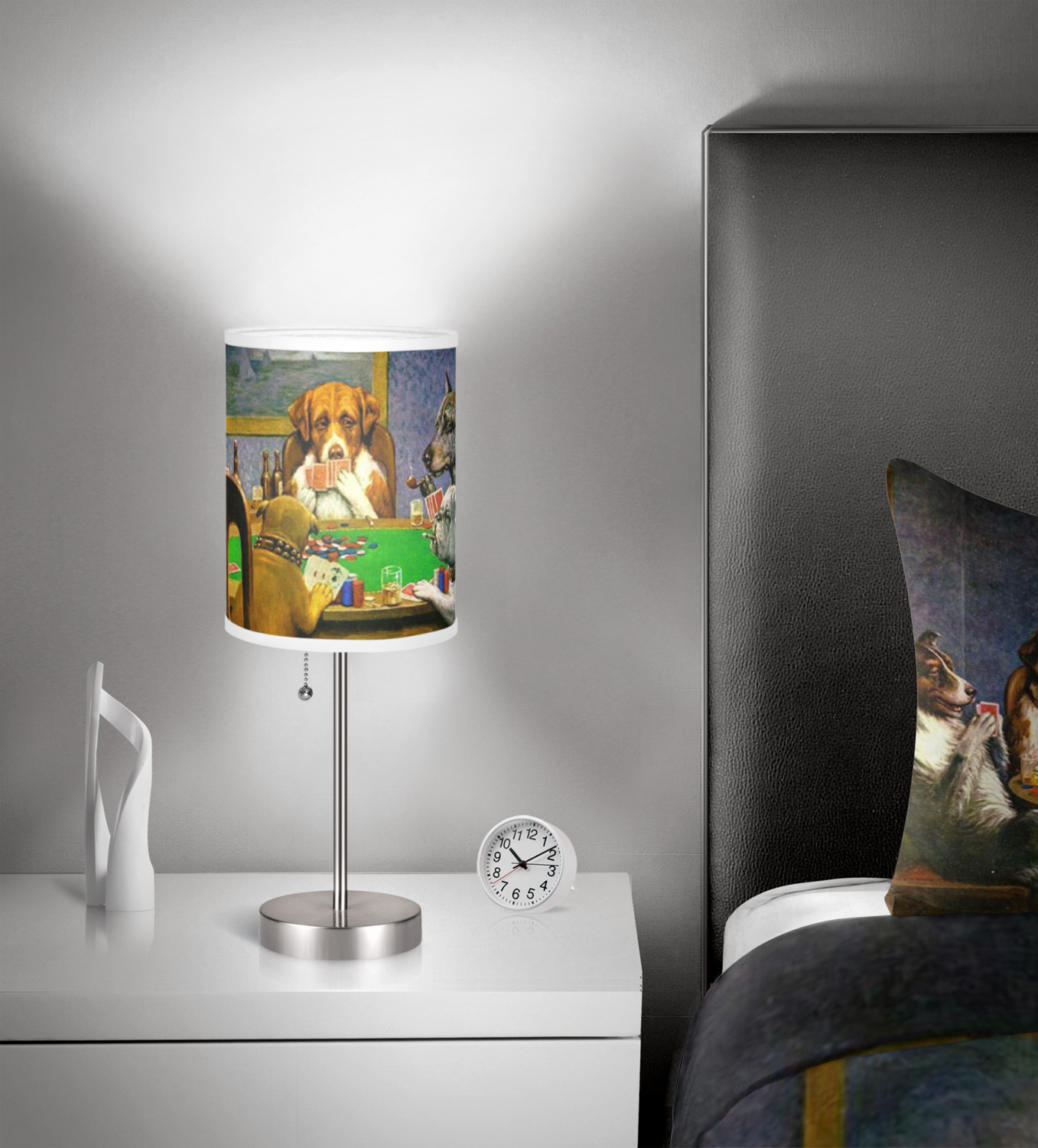 Dogs Playing Poker refers collectively to an 1894 painting, a series of sixteen oil paintings, and a 1910 painting by Cassius Marcellus Coolidge. Brown & Bigelow commissioned the 16 painting series in 1903 to advertise cigars. All eighteen paintings in the series feature personified dogs, but the eleven in which dogs are seated around a card table have become well known in the United States as examples of Kitsch art in home decoration. Source: Wikipedia