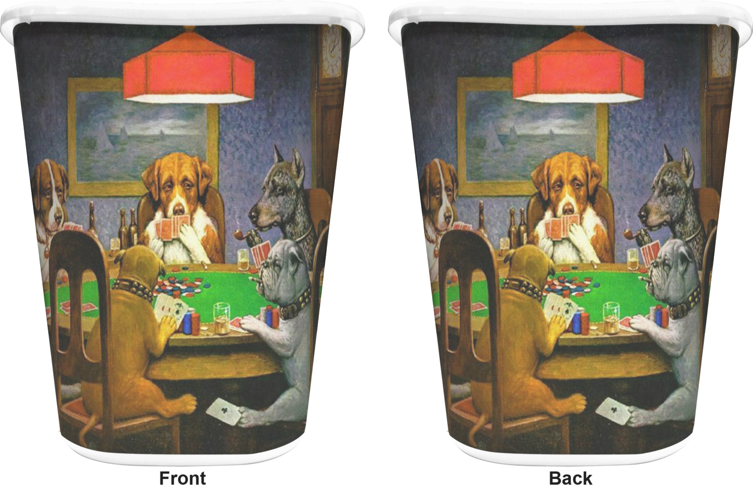 Dogs Playing Poker refers collectively to an 1894 painting, a series of sixteen oil paintings, and a 1910 painting by Cassius Marcellus Coolidge. Brown & Bigelow commissioned the 16 painting series in 1903 to advertise cigars. All eighteen paintings in the series feature personified dogs, but the eleven in which dogs are seated around a card table have become well known in the United States as examples of Kitsch art in home decoration. Source: Wikipedia