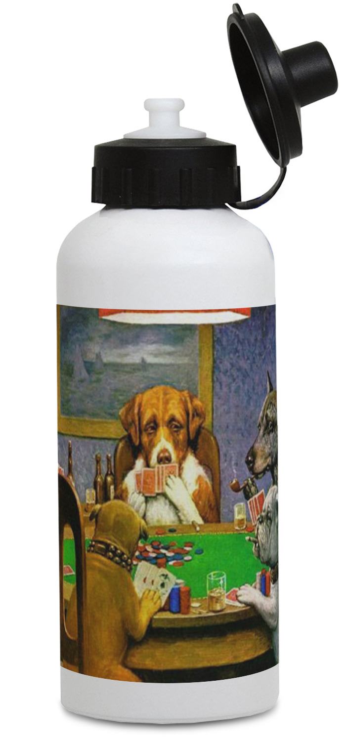 Dogs Playing Poker refers collectively to an 1894 painting, a series of sixteen oil paintings, and a 1910 painting by Cassius Marcellus Coolidge. Brown & Bigelow commissioned the 16 painting series in 1903 to advertise cigars. All eighteen paintings in the series feature personified dogs, but the eleven in which dogs are seated around a card table have become well known in the United States as examples of Kitsch art in home decoration. Source: Wikipedia