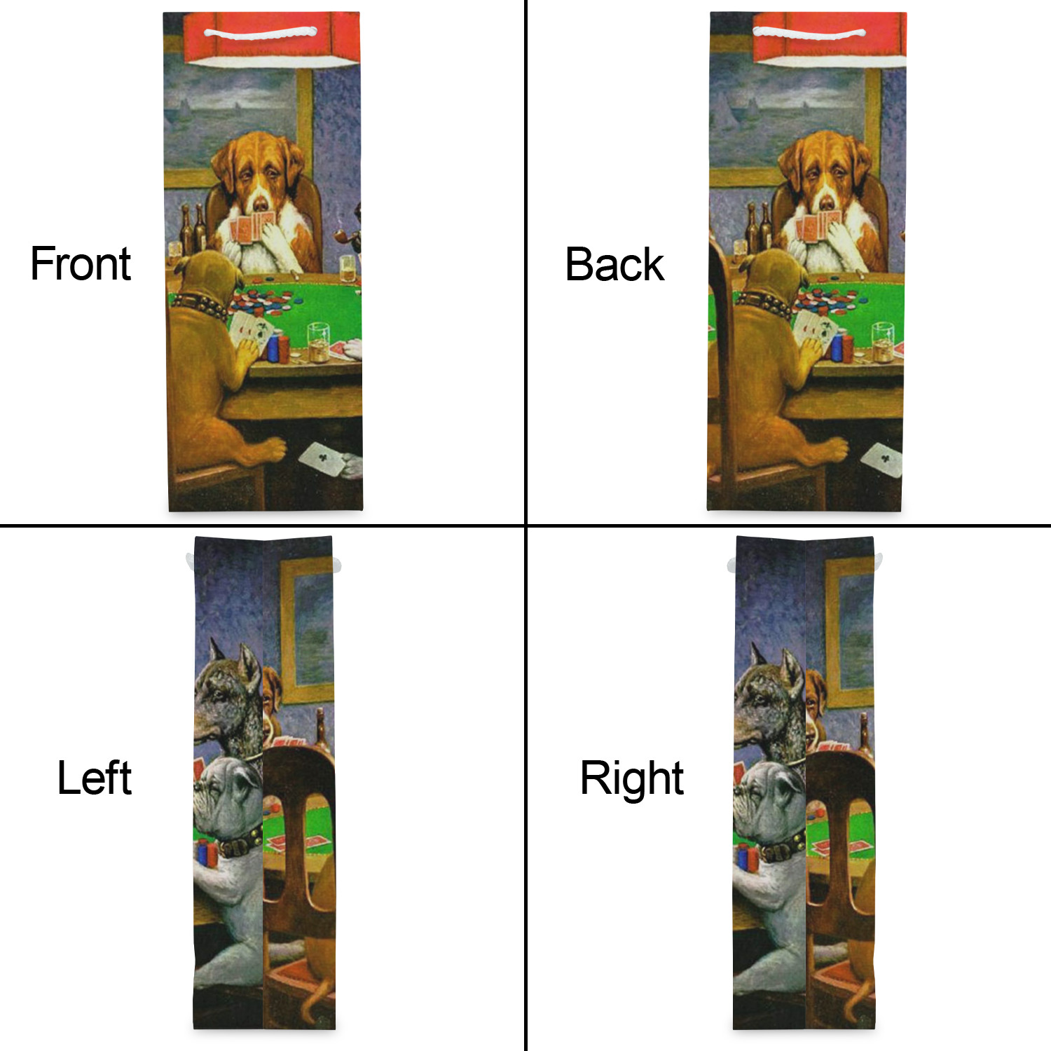 Our wine bags are printed on premium paper. The bags are then cut, scored and folded. The handles and cardstock base it attached. These custom wine bags are printed and made in the USA.