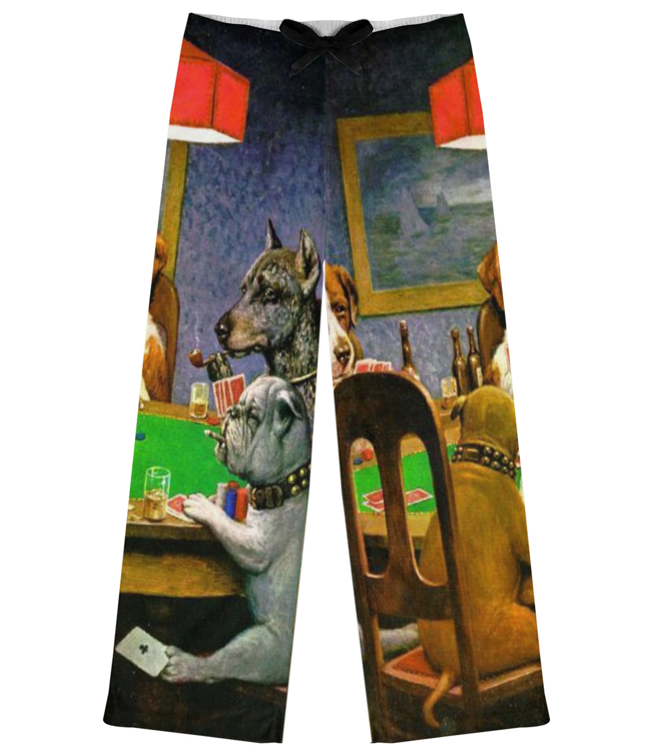 Dogs Playing Poker refers collectively to an 1894 painting, a series of sixteen oil paintings, and a 1910 painting by Cassius Marcellus Coolidge. Brown & Bigelow commissioned the 16 painting series in 1903 to advertise cigars. All eighteen paintings in the series feature personified dogs, but the eleven in which dogs are seated around a card table have become well known in the United States as examples of Kitsch art in home decoration. Source: Wikipedia