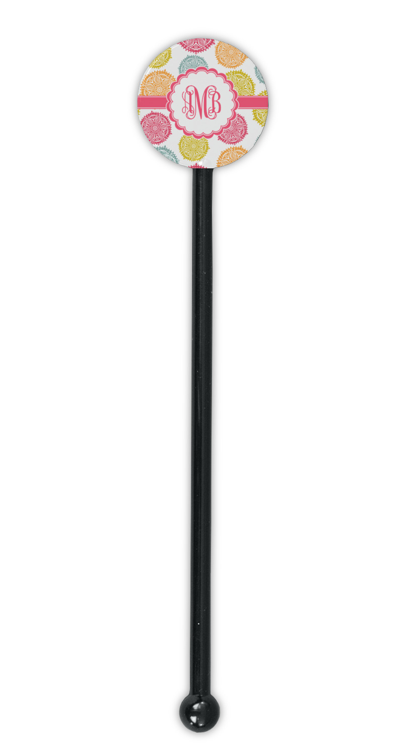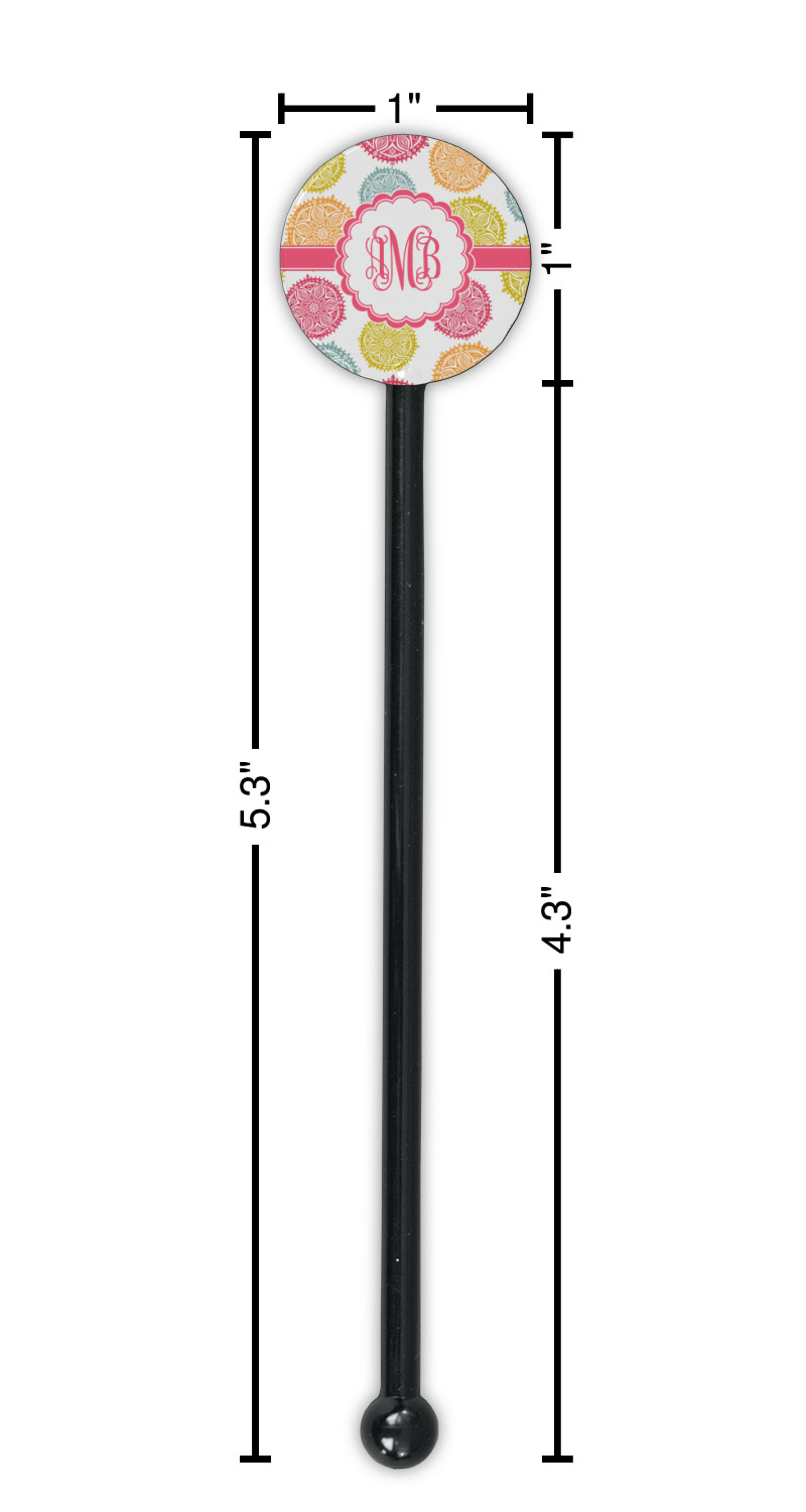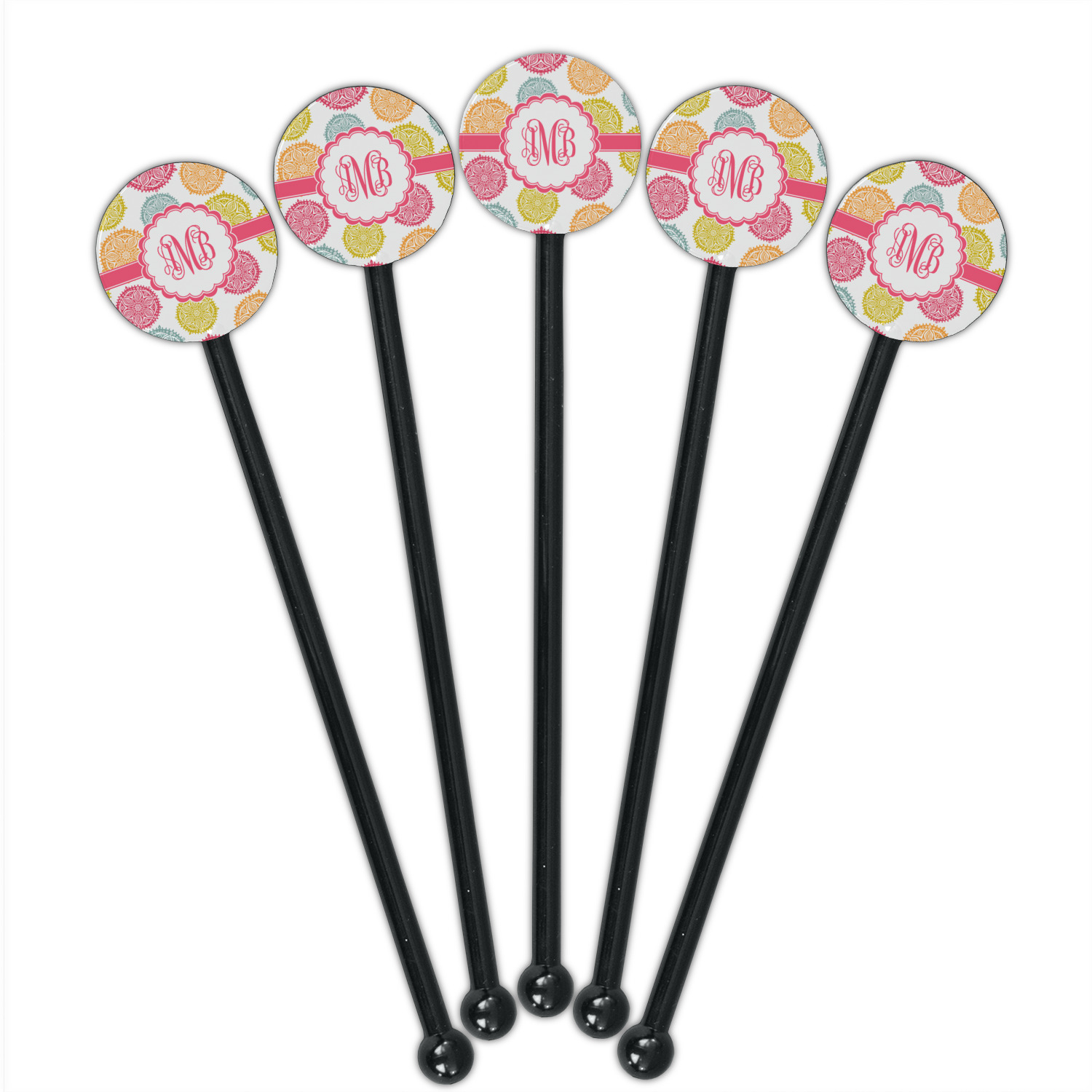 Shape + Symbol Designs for 5.5" Round Plastic Stir Sticks - Black - Single-Sided