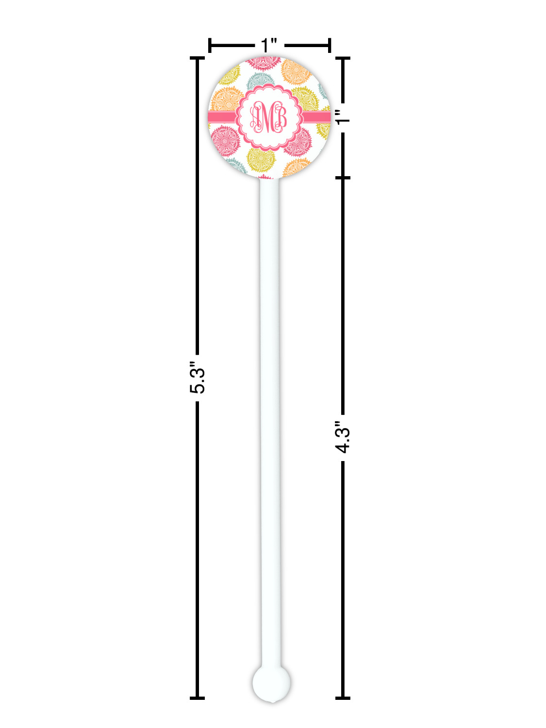 Shape + Symbol Designs for 5.5" Round Plastic Stir Sticks - White - Double-Sided