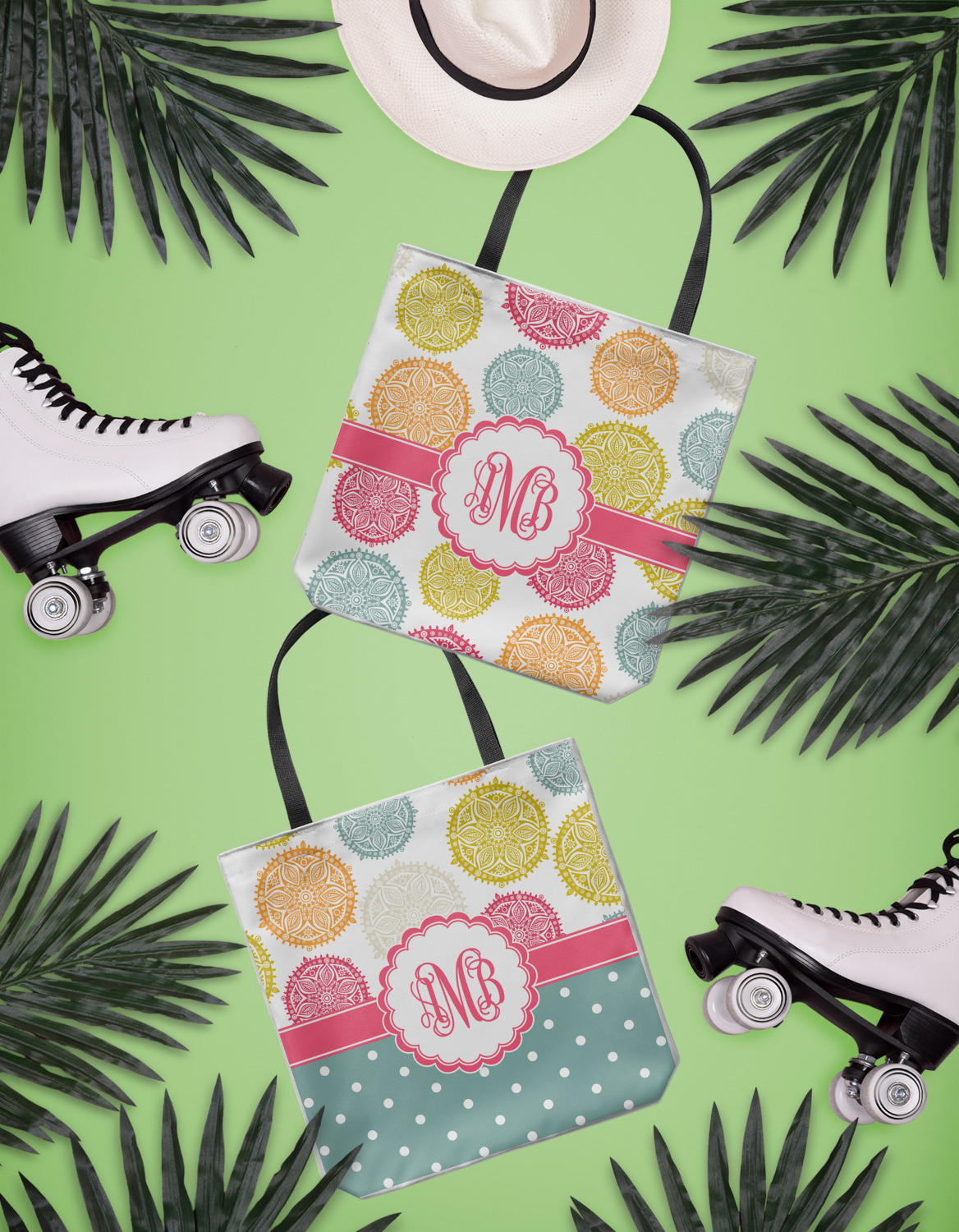 Our all purpose Canvas Totes bags are available in 3 sizes and in hundreds of different designs with many different prints & patterns, which are available in many different colors. You can customize the labels, the ribbons, the personalization styles and of course the fonts.