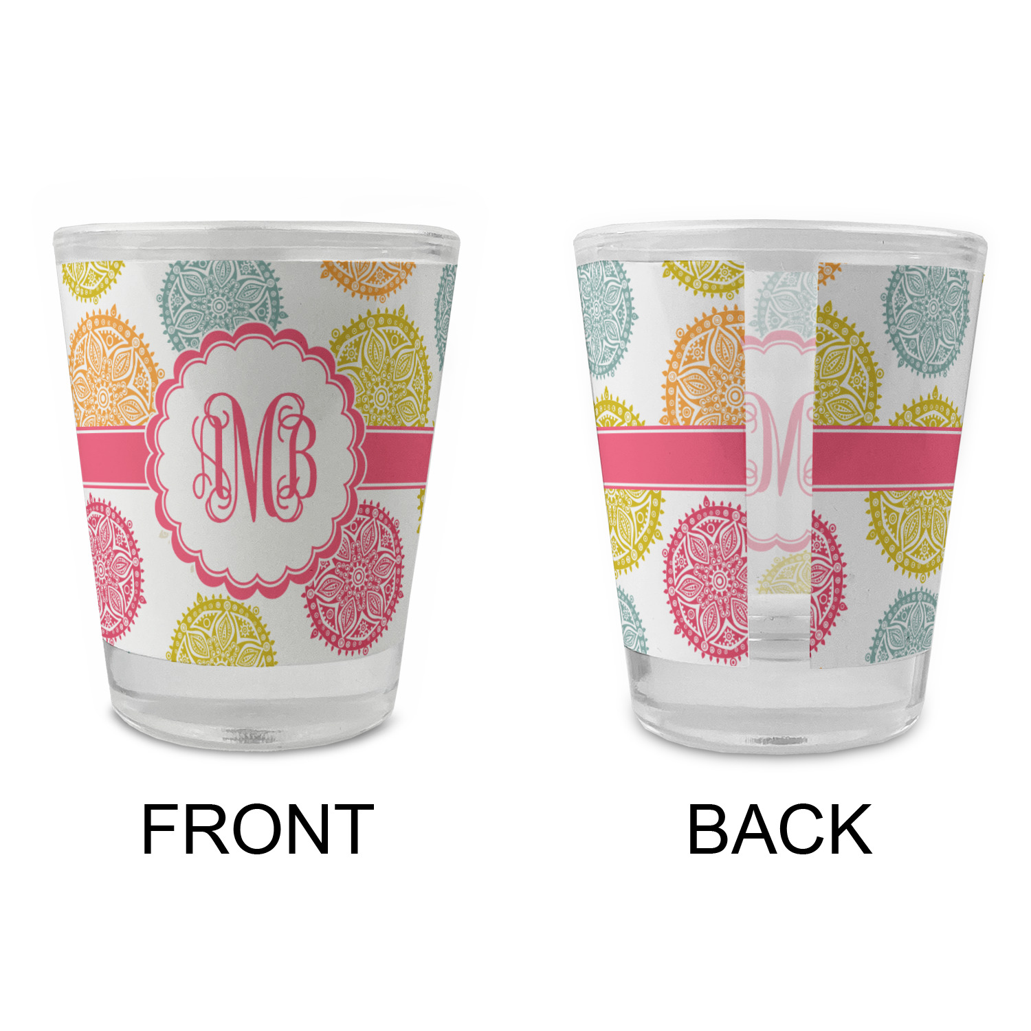 Made with frosted glass, these shot glasses are printed in full color with the design of your choice. They are a standard 1.5oz shot glass and are 2.4" tall. The print is wrapped around the shot glass in a full wrap and boldly displays your customization.