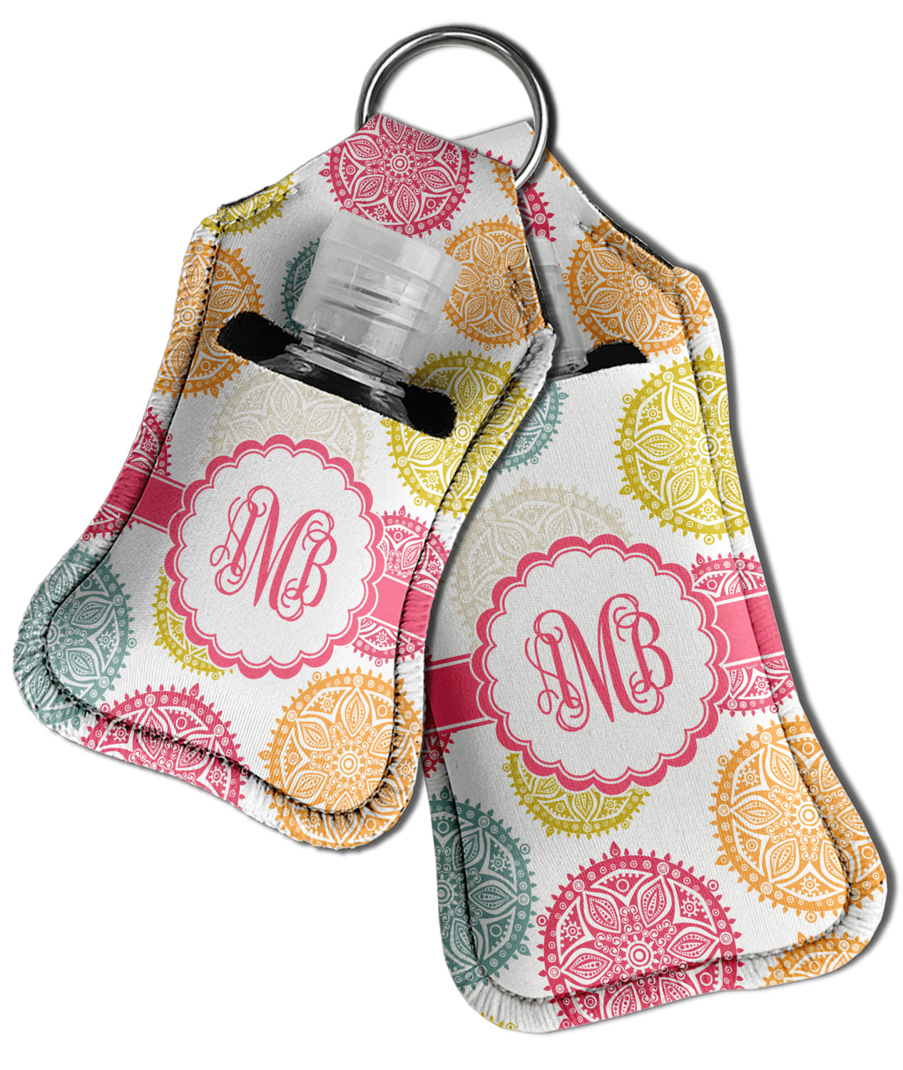 Each hand sanitizer holder comes with its own empty travel-sized, refillable hand sanitizer sure to fit snug in your customized sanitizer case! Our hand sanitizer cases are a durable, yet soft neoprene material sure to last any daily activities or travel agenda. Customize and personalize a hand sanitizer bottle holder with one of our two sizes - small (4.25" x 2.25") or large (5.5" x 2.5"). Each travel sanitizer holder comes with a keyring for attachment on bags, keys, or more!