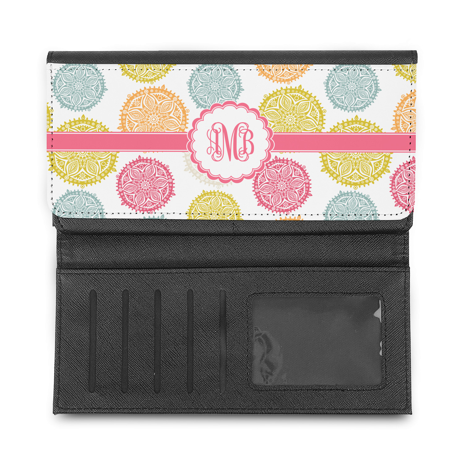 These leatherette ladies wallets can be customized with any one of our patterns (many patterns are available in multiple colors). Of course adding personalization (free) is your choice - you can include a monogram (interlocking is my favorite), a name, or one of our beautiful name and initial combinations.
