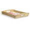 This serving tray with handles features square edges and two rounded sides, creating a very modern look. Each side is fabricated from a beautifully cut, natural wood. The bottom of the interior of the tray displays your customized design in bright, vibrant color. The tray is sold in both a black color and a natural wood look. Each variation of the wood serving tray has two sizes: Small, which is 14" x 10" x 2.25", and Large, which is 19.5" x 13.5" x 2.75".