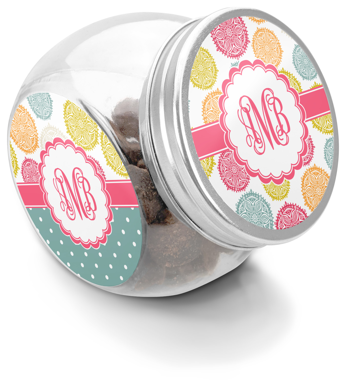 This treat jar is an excellent way to store treats for your favorite canine or feline. Moreover, their delicate, classy appearance makes them a tasteful addition to your countertop's décor. Crafted from clear glass, its unique construction and silver metal, screw-on lid allows for quick and easy access. Three, permanent, vinyl stickers are applied to both sides of the jar and lid, presenting your personalized design. The base of this glass, dog treat jar is 3.4" x 4.75", and the jar stands at 5" tall. Though on the smaller side, this jar is best suited for smaller treats or training treats.