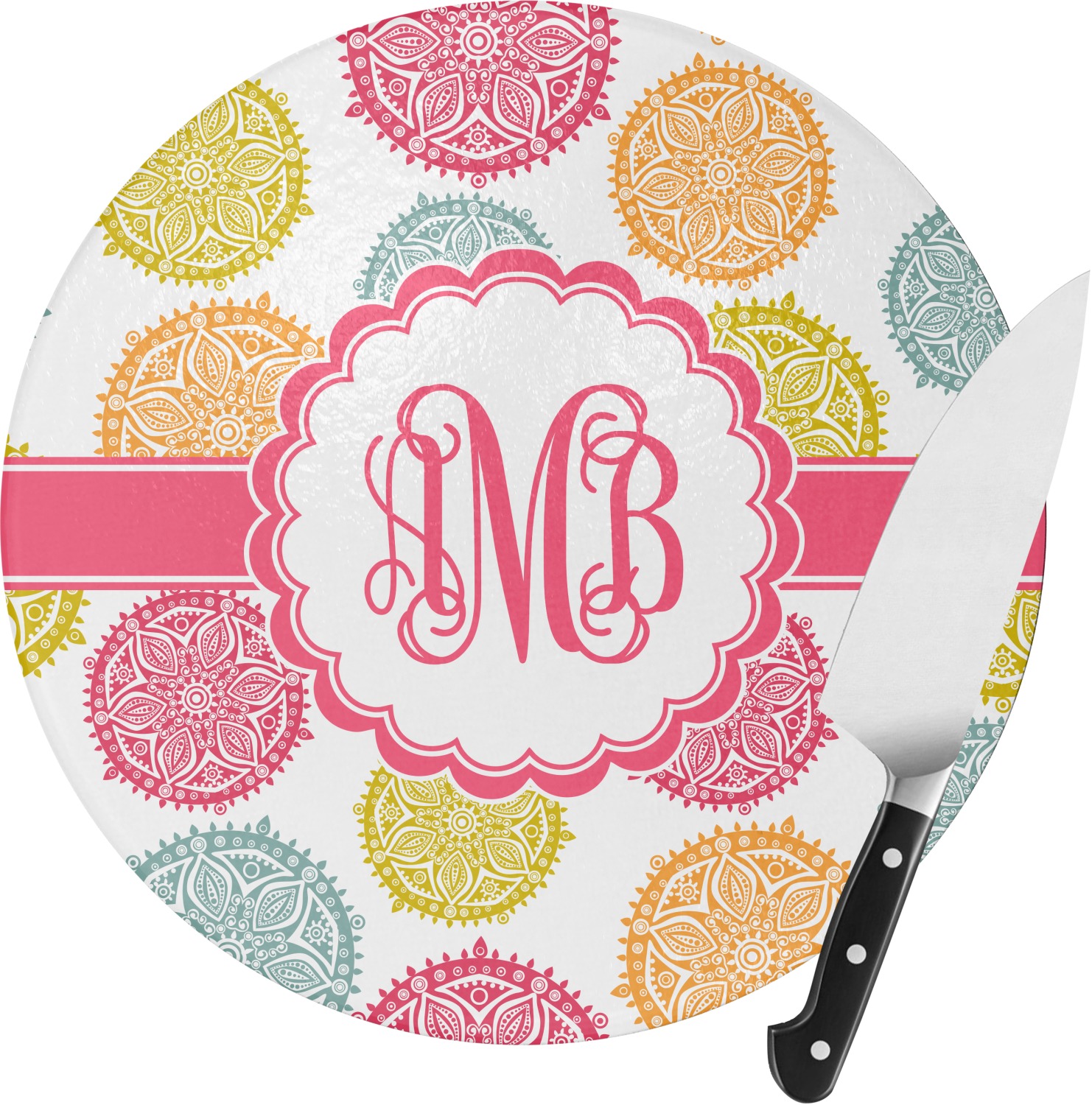 Prep your meals with passion when you use our personalized round cutting boards. The personalization options we offer really make them one of a kind and they are available in delightful colors and designs that might just keep you smiling instead off crying when you're cutting onions!!