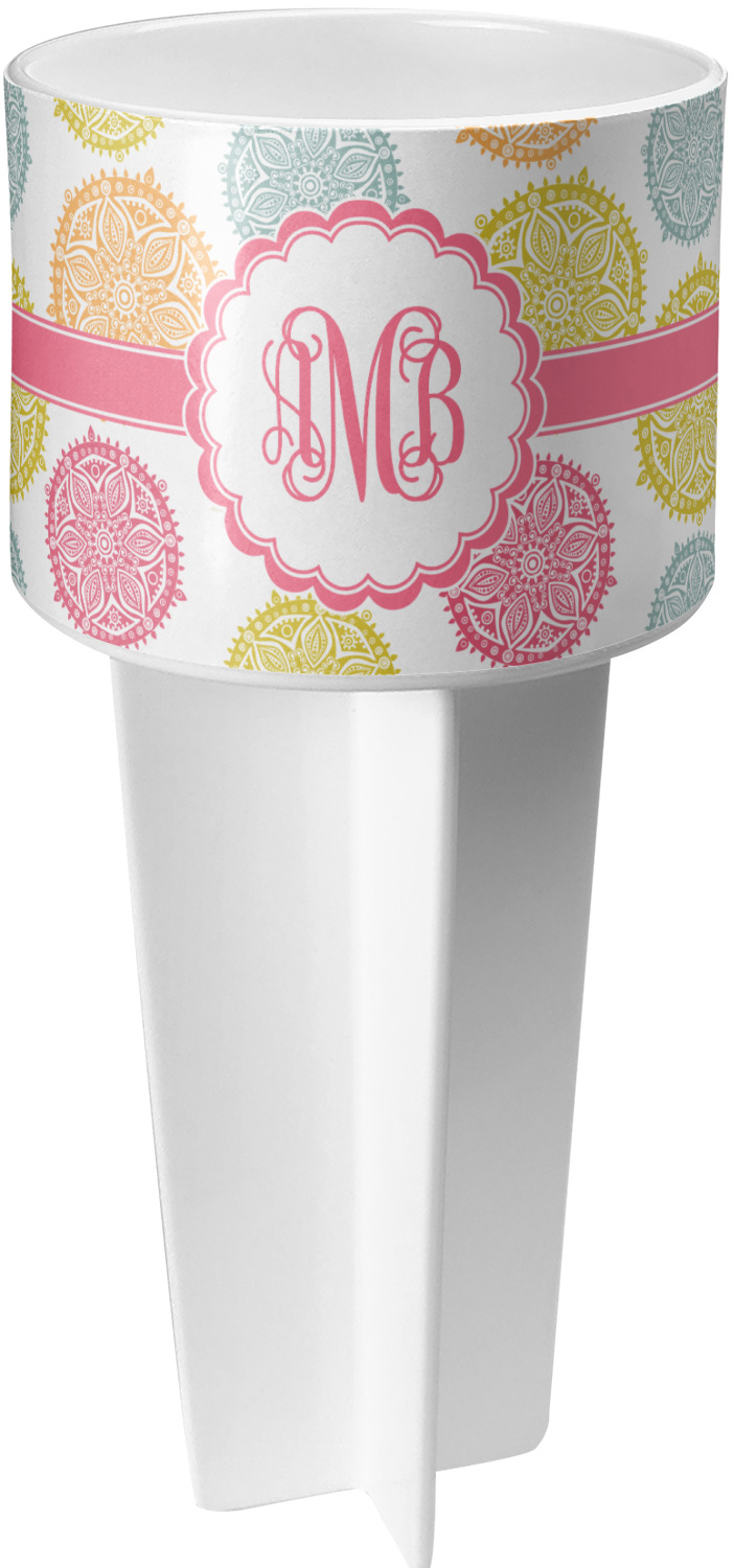 This cup holder has a large stake at its bottom that anchors it to the sand or ground below, while the cup holder rests above the stake. The entire drink holder is made of durable plastic and displays your customization around the cup holder portion. We sell these personalized beach spikers in two different colors: black and white.