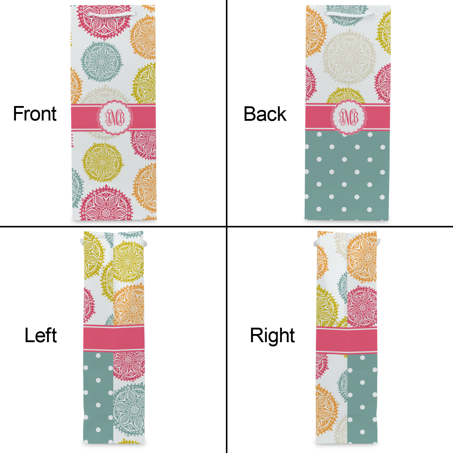Our wine bags are printed on premium paper. The bags are then cut, scored and folded. The handles and cardstock base it attached. These custom wine bags are printed and made in the USA.