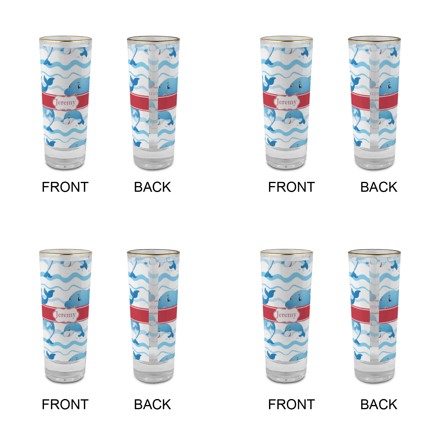 These glass shooter glasses are printed in full color with the design of your choice. These are a tall shooter 2 oz size and stand 4" tall. The print is a full wrap design to boldly display your personalization.