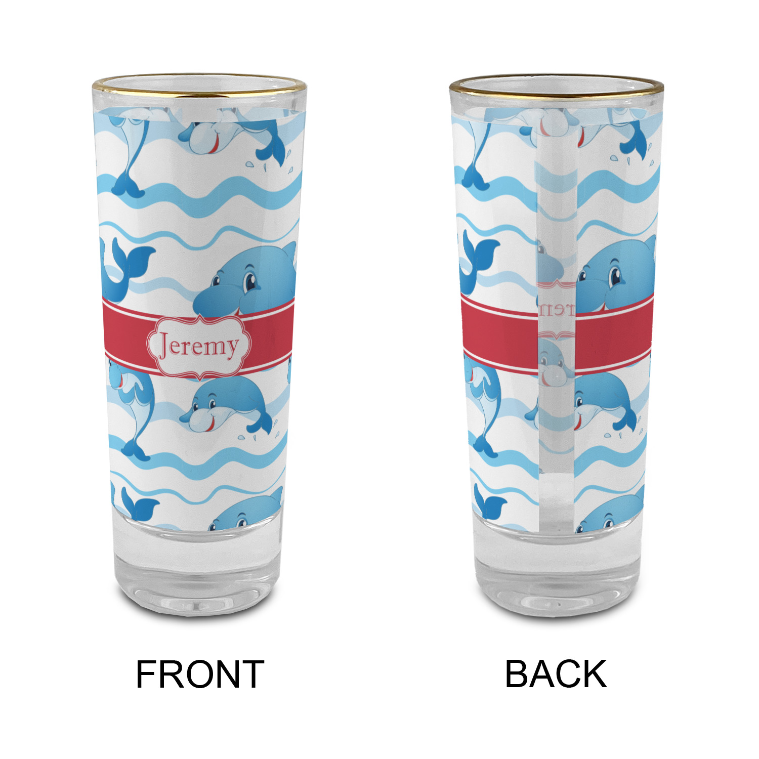 These glass shooter glasses are printed in full color with the design of your choice. These are a tall shooter 2 oz size and stand 4" tall. The print is a full wrap design to boldly display your personalization.