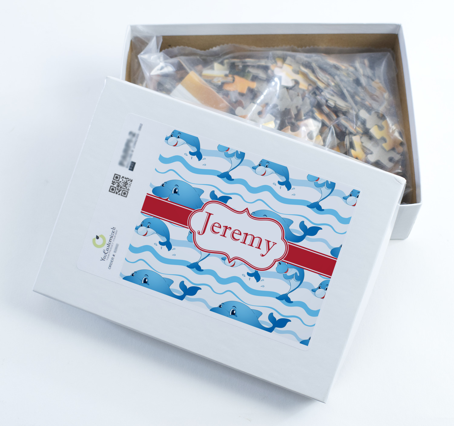 You can also upload your logo or art that you or your kids drew. To create more challenging jigsaw puzzles, you can create a pattern from with your logo or artwork. You can also add other elements such as text or personalization.