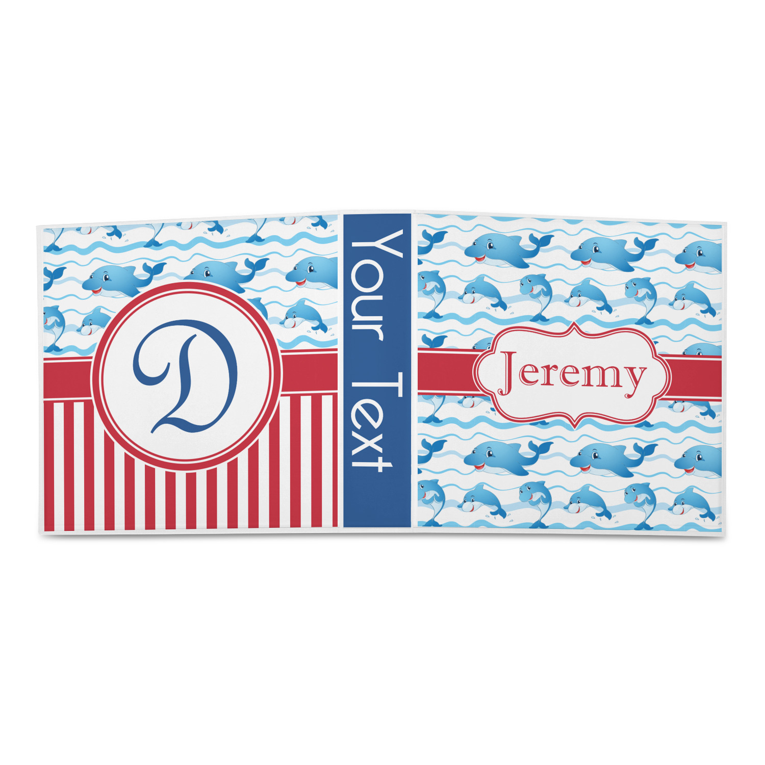 Who doesn't get excited when they see dolphins on the horizons? This design features a bunch of cute, smiling dolphins as they splash through the sea. Use to reminiscence a much missed vacation, or even just to spice up a boring summer day. Personalize by adding your kid's name!