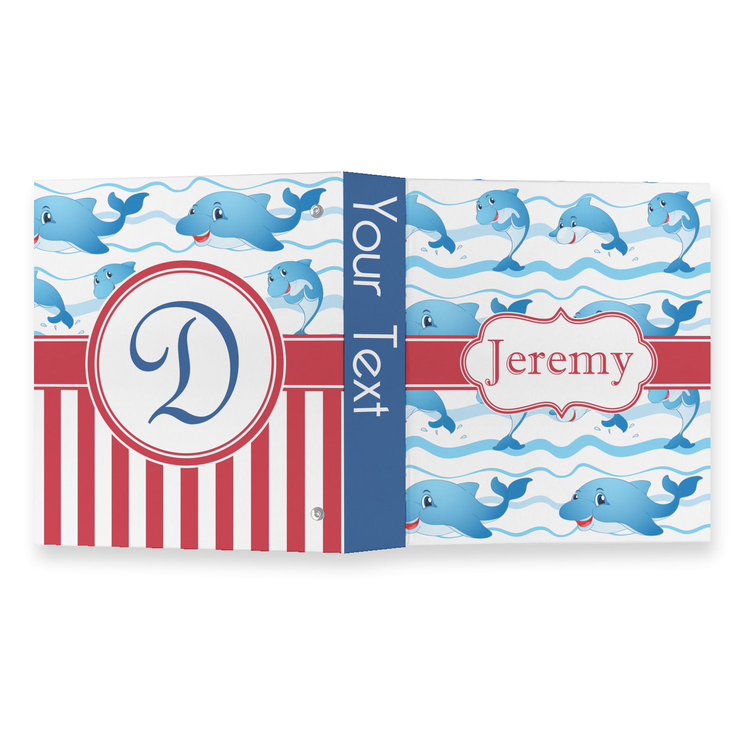 Who doesn't get excited when they see dolphins on the horizons? This design features a bunch of cute, smiling dolphins as they splash through the sea. Use to reminiscence a much missed vacation, or even just to spice up a boring summer day. Personalize by adding your kid's name!