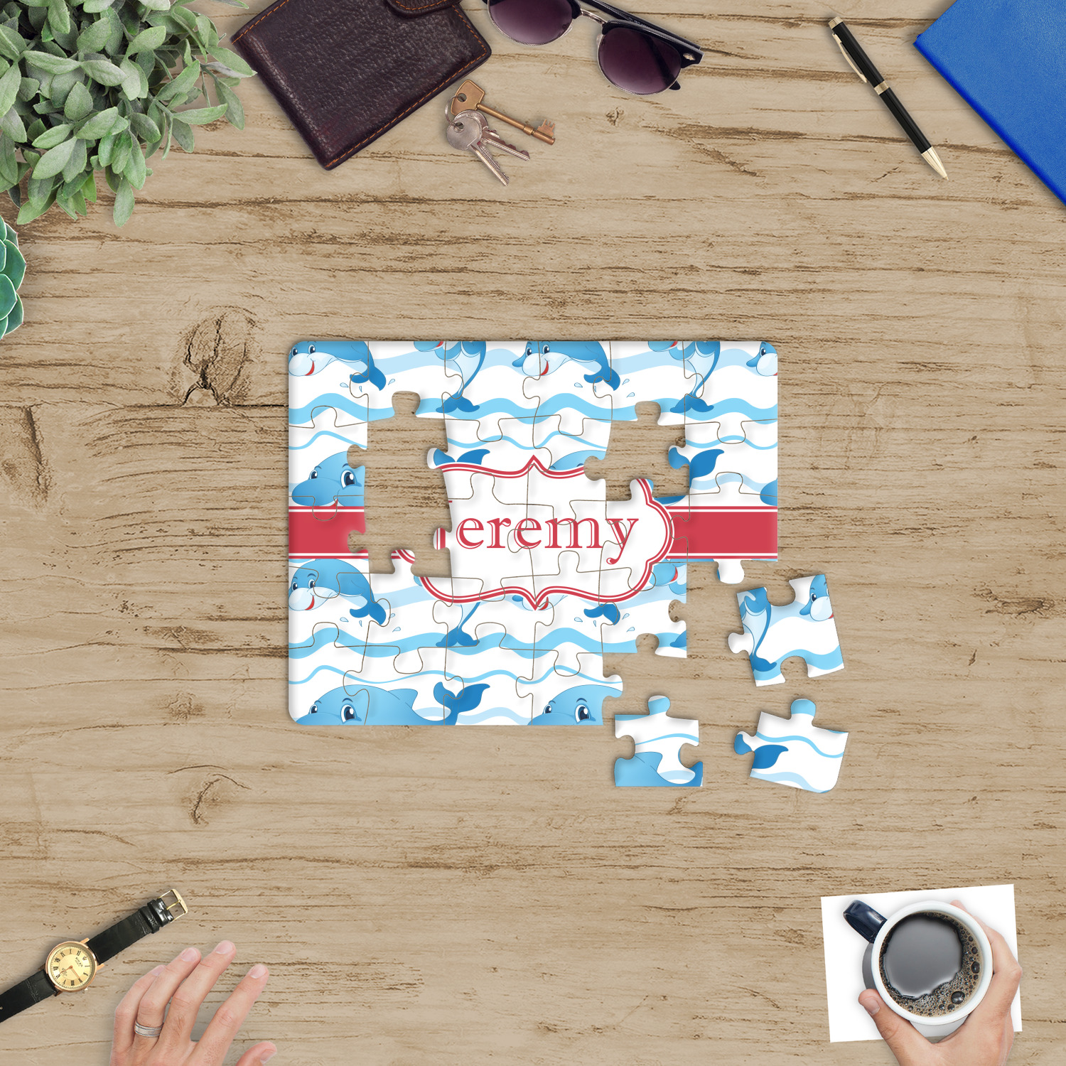 You can also upload your logo or art that you or your kids drew. To create more challenging jigsaw puzzles, you can create a pattern from with your logo or artwork. You can also add other elements such as text or personalization.