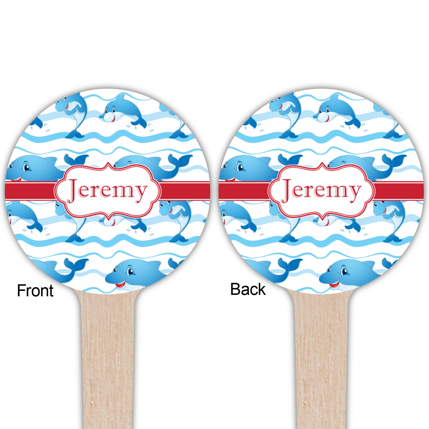 Who doesn't get excited when they see dolphins on the horizons? This design features a bunch of cute, smiling dolphins as they splash through the sea. Use to reminiscence a much missed vacation, or even just to spice up a boring summer day. Personalize by adding your kid's name!