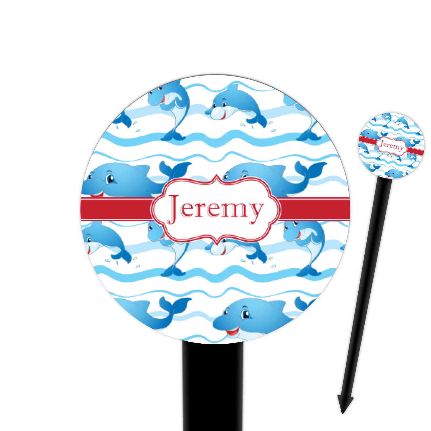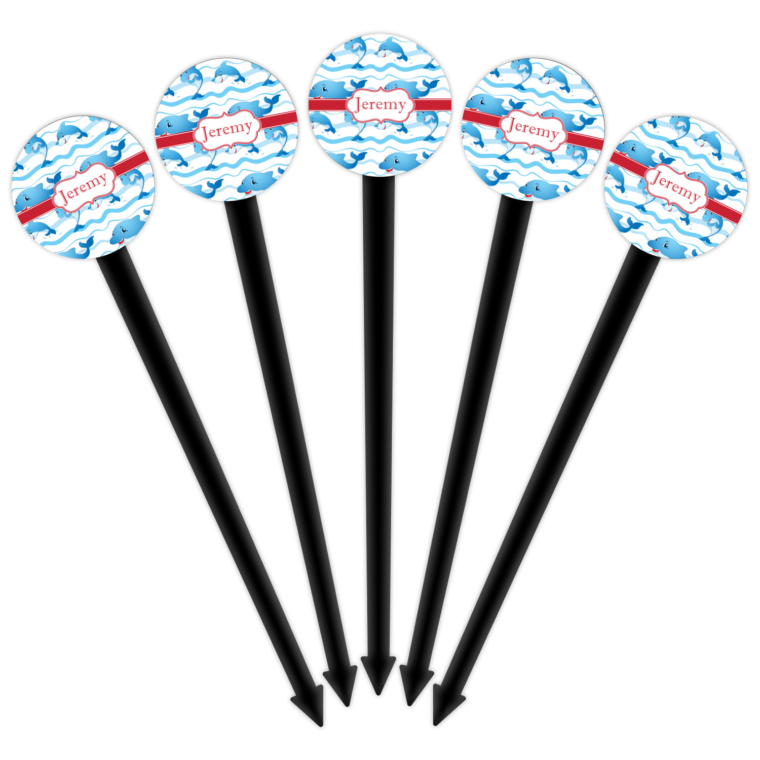 Coastal / Beach Style Designs for 6" Round Plastic Food Picks - Black - Double-Sided
