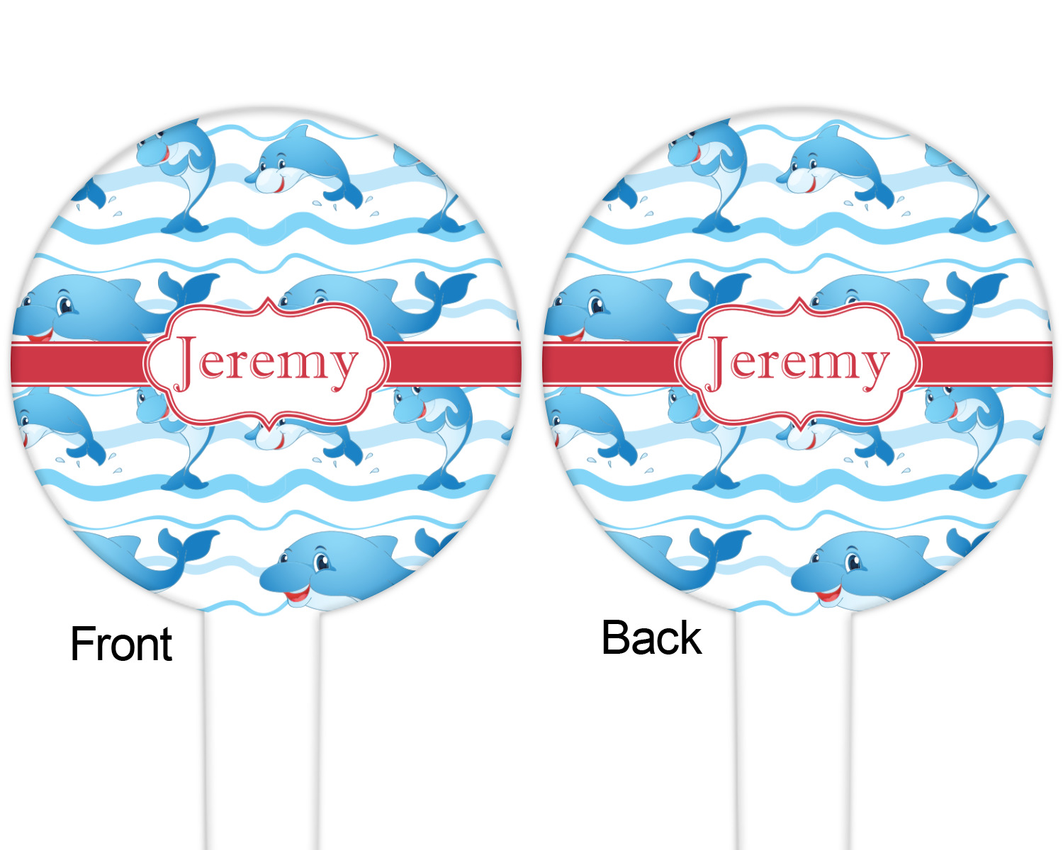 Who doesn't get excited when they see dolphins on the horizons? This design features a bunch of cute, smiling dolphins as they splash through the sea. Use to reminiscence a much missed vacation, or even just to spice up a boring summer day. Personalize by adding your kid's name!