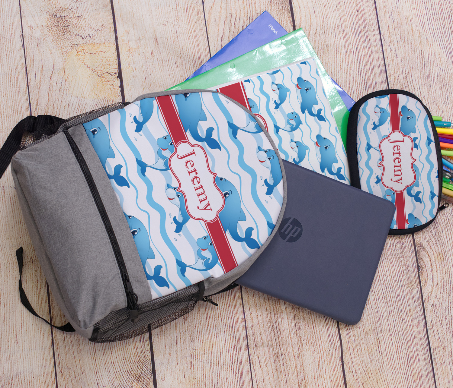 Who doesn't get excited when they see dolphins on the horizons? This design features a bunch of cute, smiling dolphins as they splash through the sea. Use to reminiscence a much missed vacation, or even just to spice up a boring summer day. Personalize by adding your kid's name!