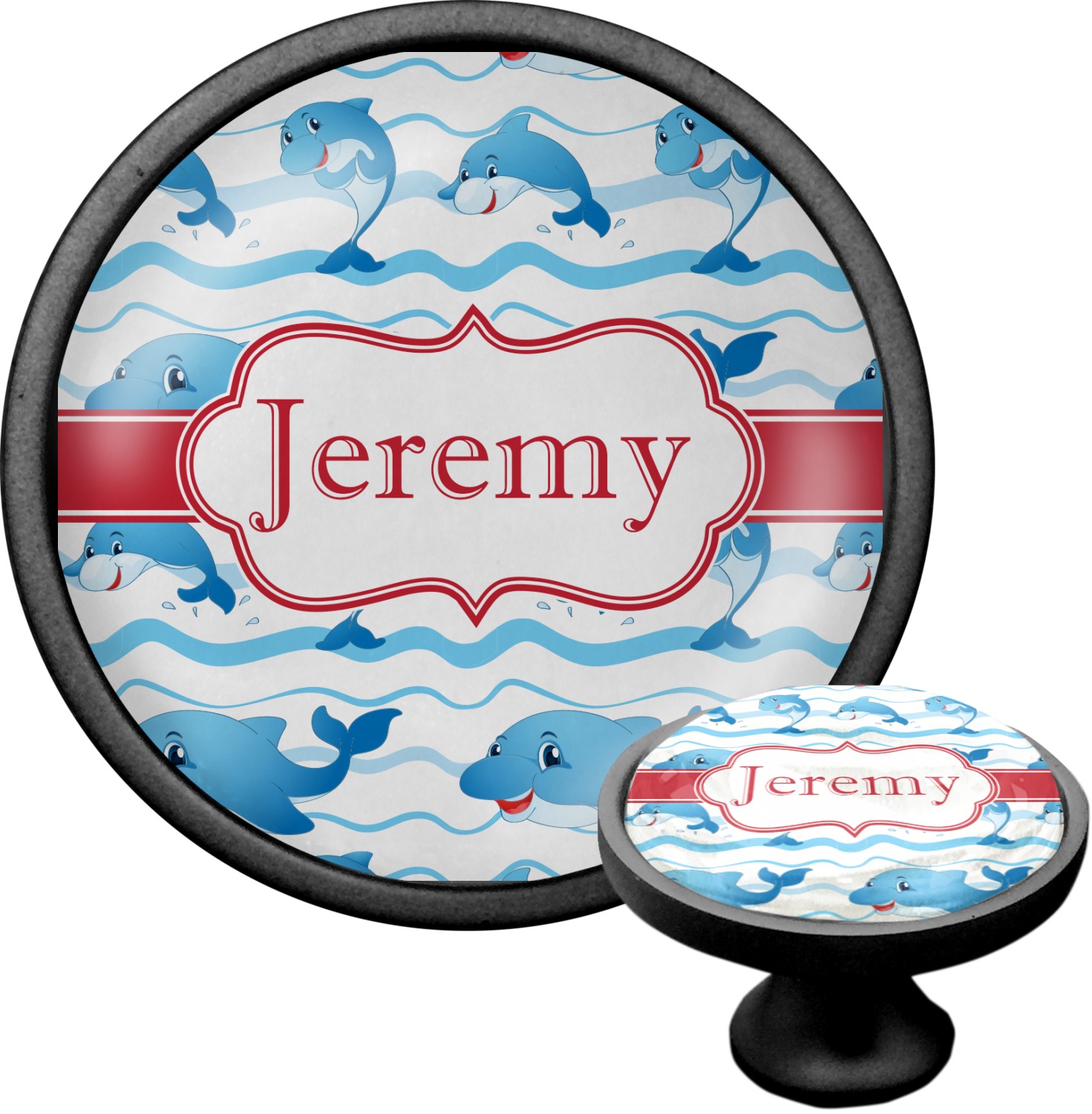 We sell these cabinet pulls in two different colors to better match your room's color scheme. We offer an oil-rubbed bronze base that is black in color, and a satin nickel option, which has a silver color. Your design is displayed across a high gloss vinyl insert that is placed on top of these cabinet handles. We then place a 1 inch thick glass cabochon atop the design, which seals the cabinet knob and makes the colors of your customization stand out. These custom cabinet knobs are approximately 1.3 inches in diameter. Your purchase includes a 1 inch screw that can be used to mount the knob to any cabinet in your home.