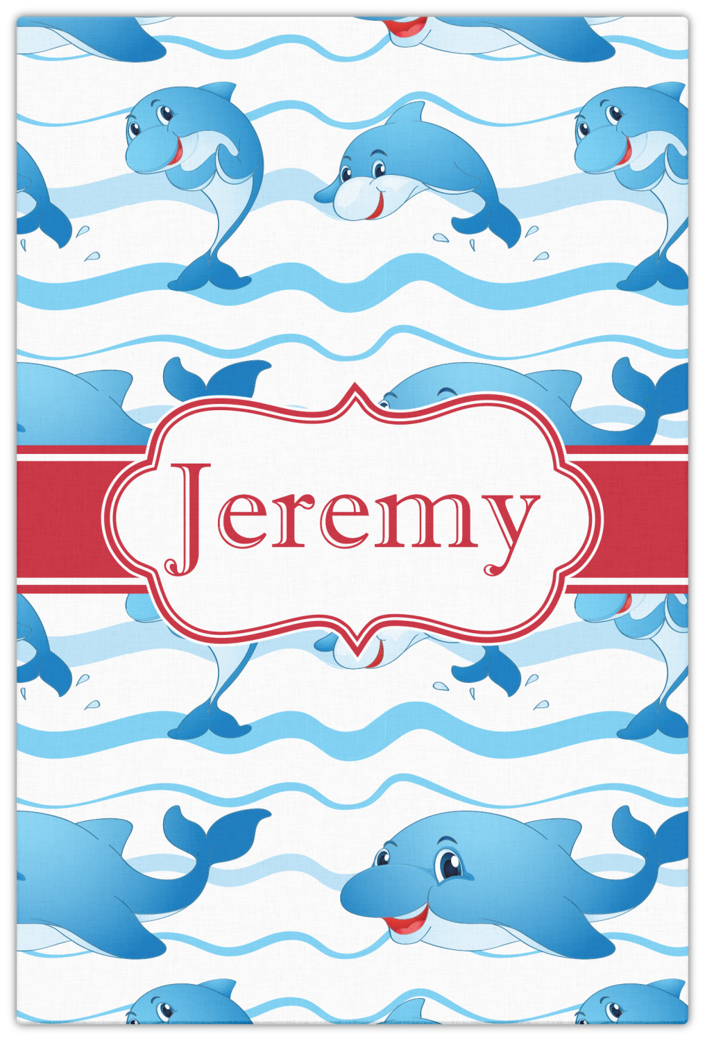 Who doesn't get excited when they see dolphins on the horizons? This design features a bunch of cute, smiling dolphins as they splash through the sea. Use to reminiscence a much missed vacation, or even just to spice up a boring summer day. Personalize by adding your kid's name!