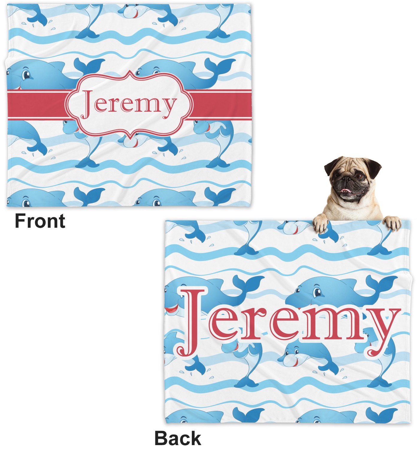 These dog blankets are crafted from a gentle, soft-to-the-touch, minky material. We print your customizations, either matching or differing, on both the top and underside of the blanket. These personalized dog blankets are available in two sizes: regular and large. Our regular size, at 40" x 30", accommodates small and some medium size dogs. At 60" x 50", our large dog blanket is a better fit for bigger breeds. Though specialized for dogs, these blankets still make a thoughtful gift for your favorite feline, or any other pet in mind!