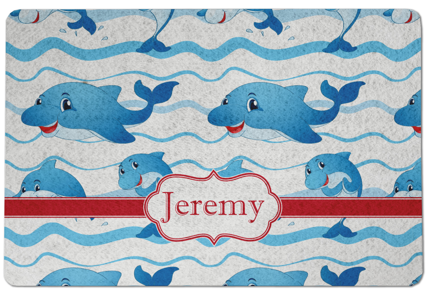 Who doesn't get excited when they see dolphins on the horizons? This design features a bunch of cute, smiling dolphins as they splash through the sea. Use to reminiscence a much missed vacation, or even just to spice up a boring summer day. Personalize by adding your kid's name!