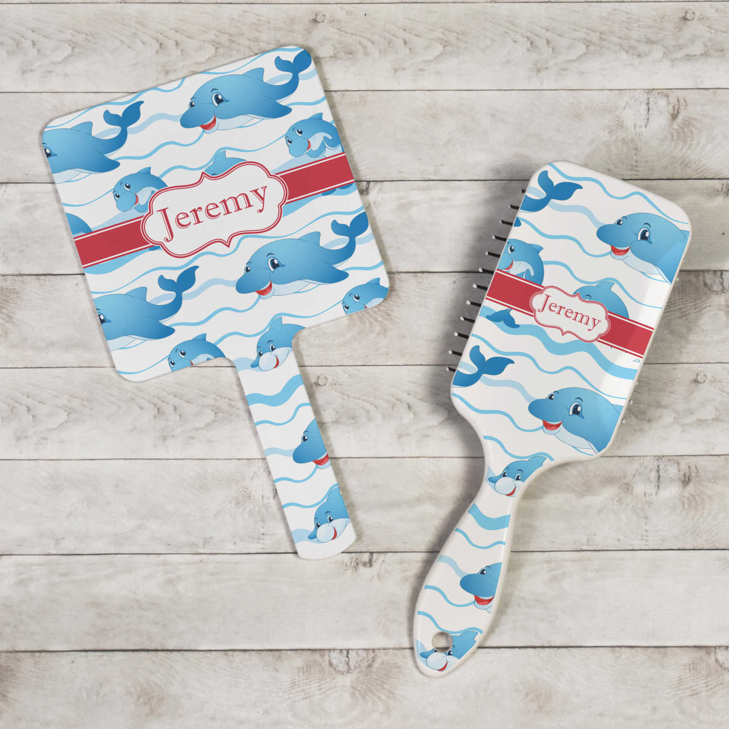 Who doesn't get excited when they see dolphins on the horizons? This design features a bunch of cute, smiling dolphins as they splash through the sea. Use to reminiscence a much missed vacation, or even just to spice up a boring summer day. Personalize by adding your kid's name!