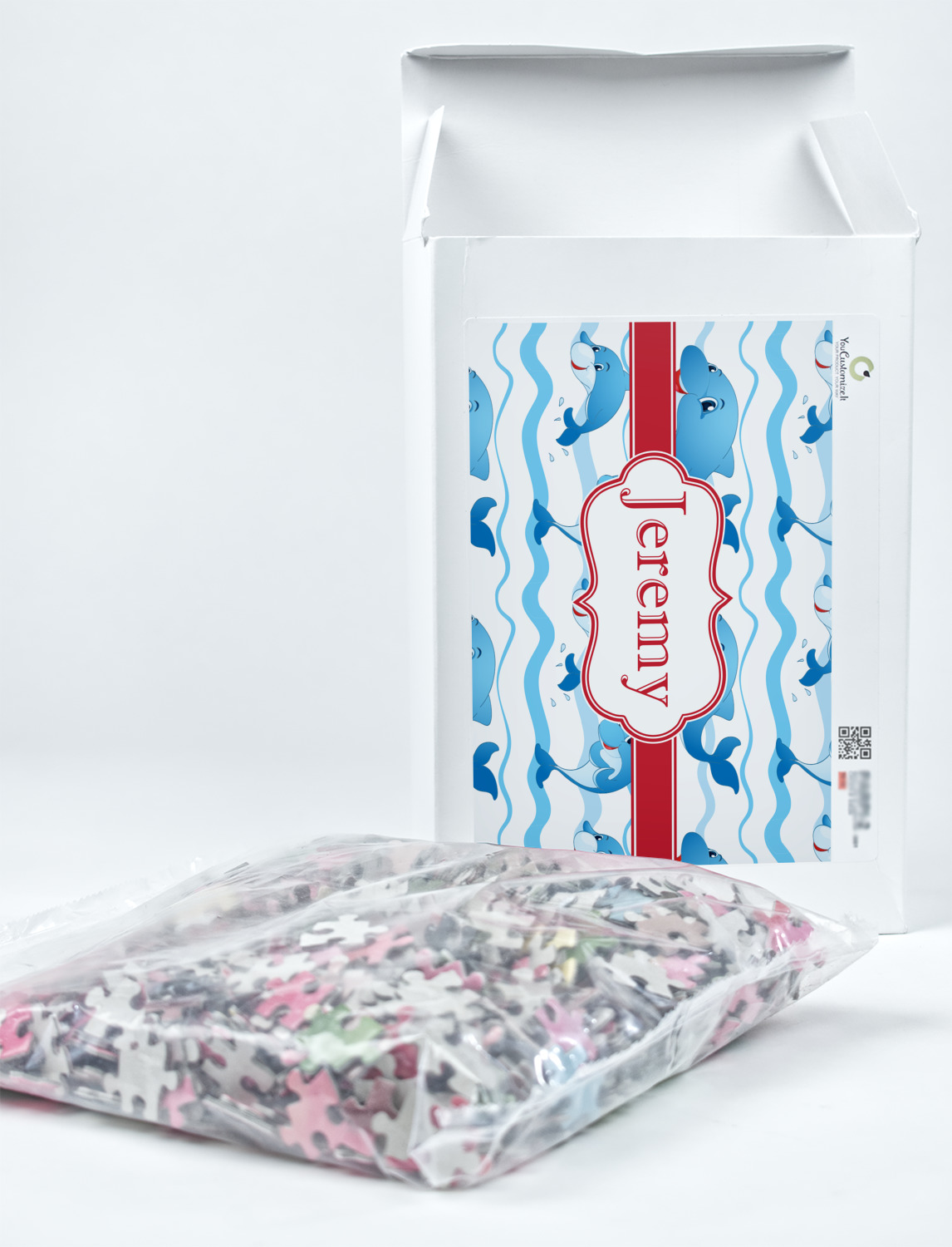 You can also upload your logo or art that you or your kids drew. To create more challenging jigsaw puzzles, you can create a pattern from with your logo or artwork. You can also add other elements such as text or personalization.