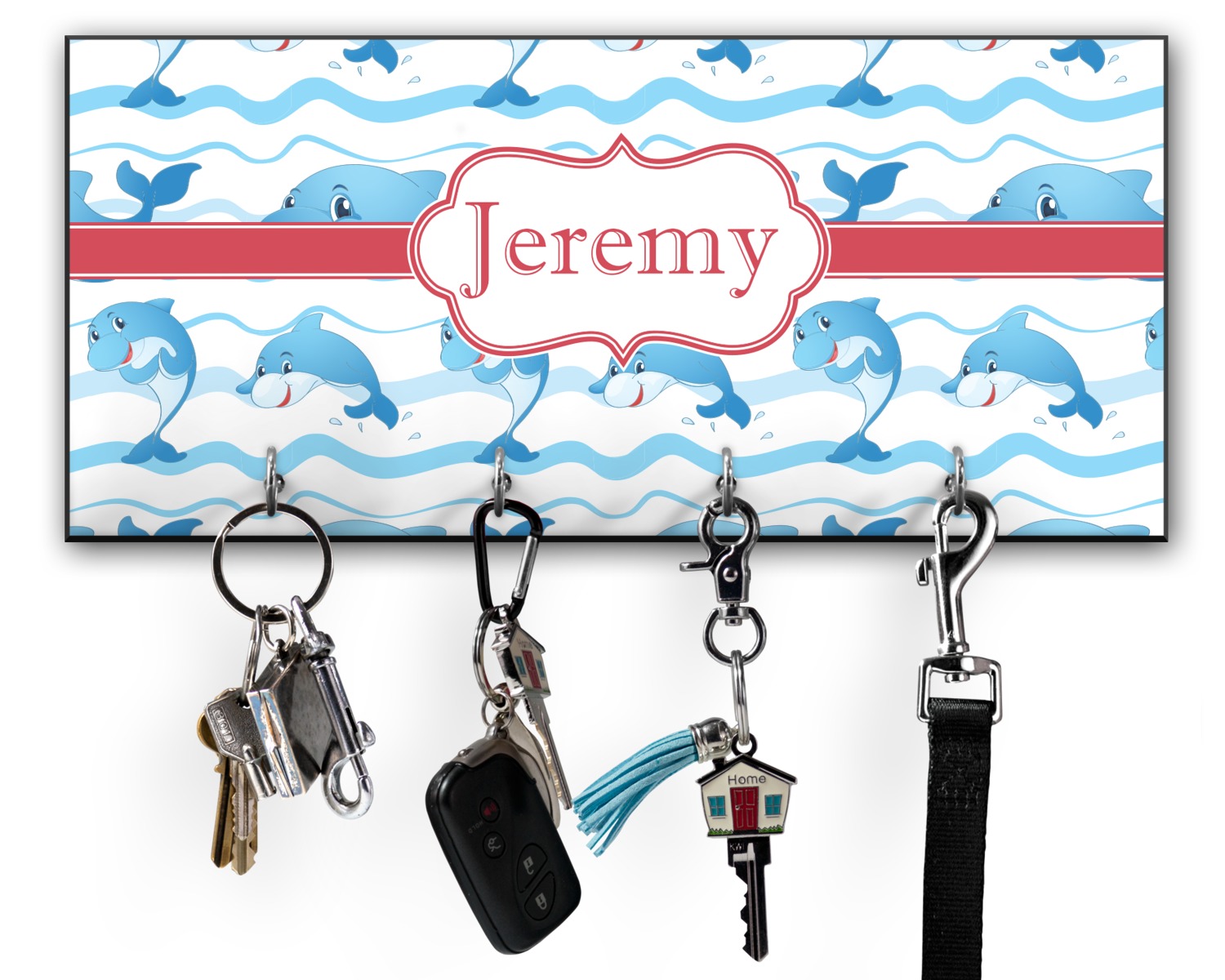 This 11" x 5" key hanger is made of sturdy wood and has four metal hooks lining the bottom. This is the perfect size for a family with several drivers. Not only can you hang keys on it though, but pet leashes and other small items. The board is black on the sides and back and is printed with the design of your choice on the front.