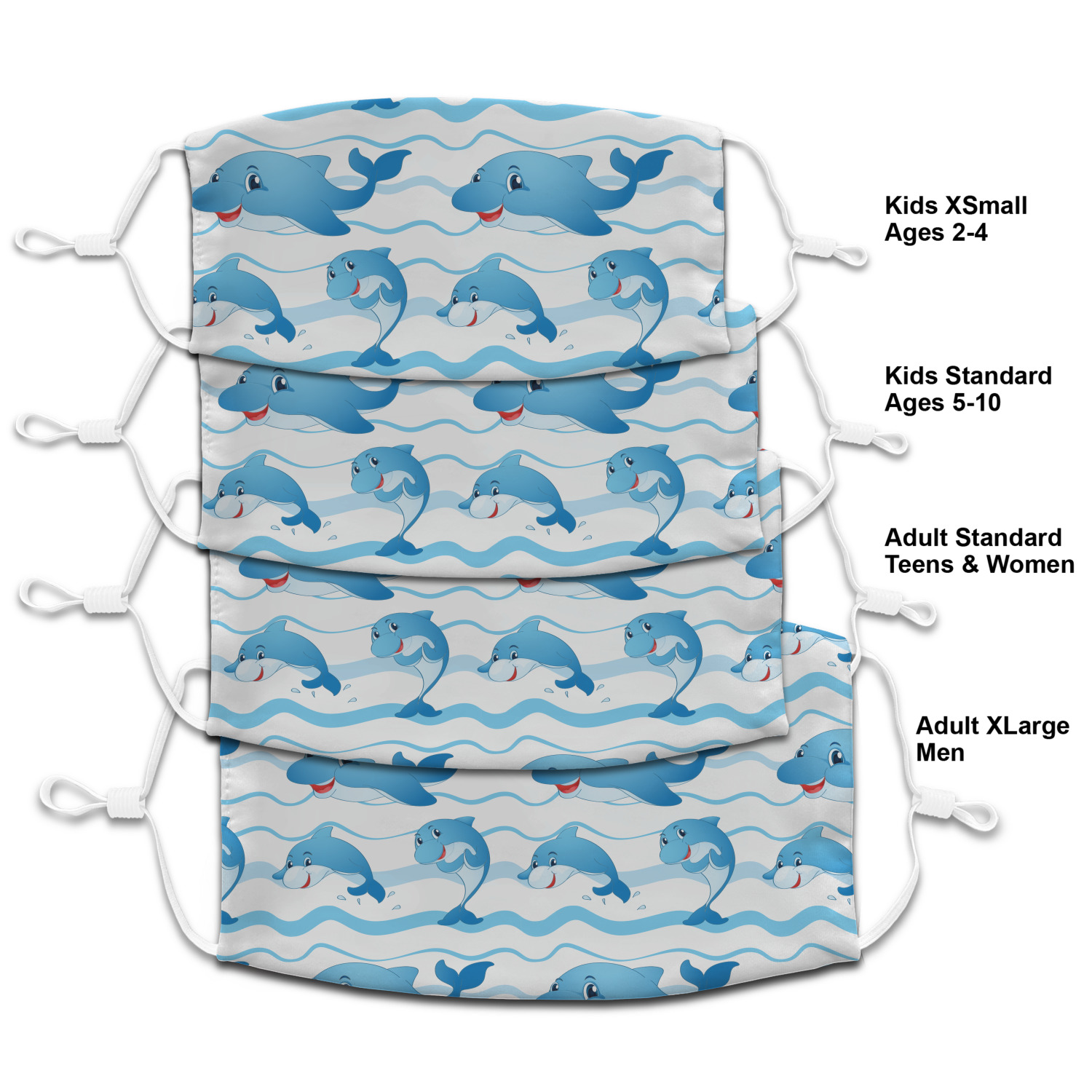 Our kids's masks are available in two sizes - Extra Small and Standard. The extra small are designed to fit 2-4 year olds, and the small to fit 4-10 year olds. The extra small face mask measures 6.25 inches wide by 3.25 inches tall, while the standard size measures 6.5 inches wide by 3.5 inches tall.