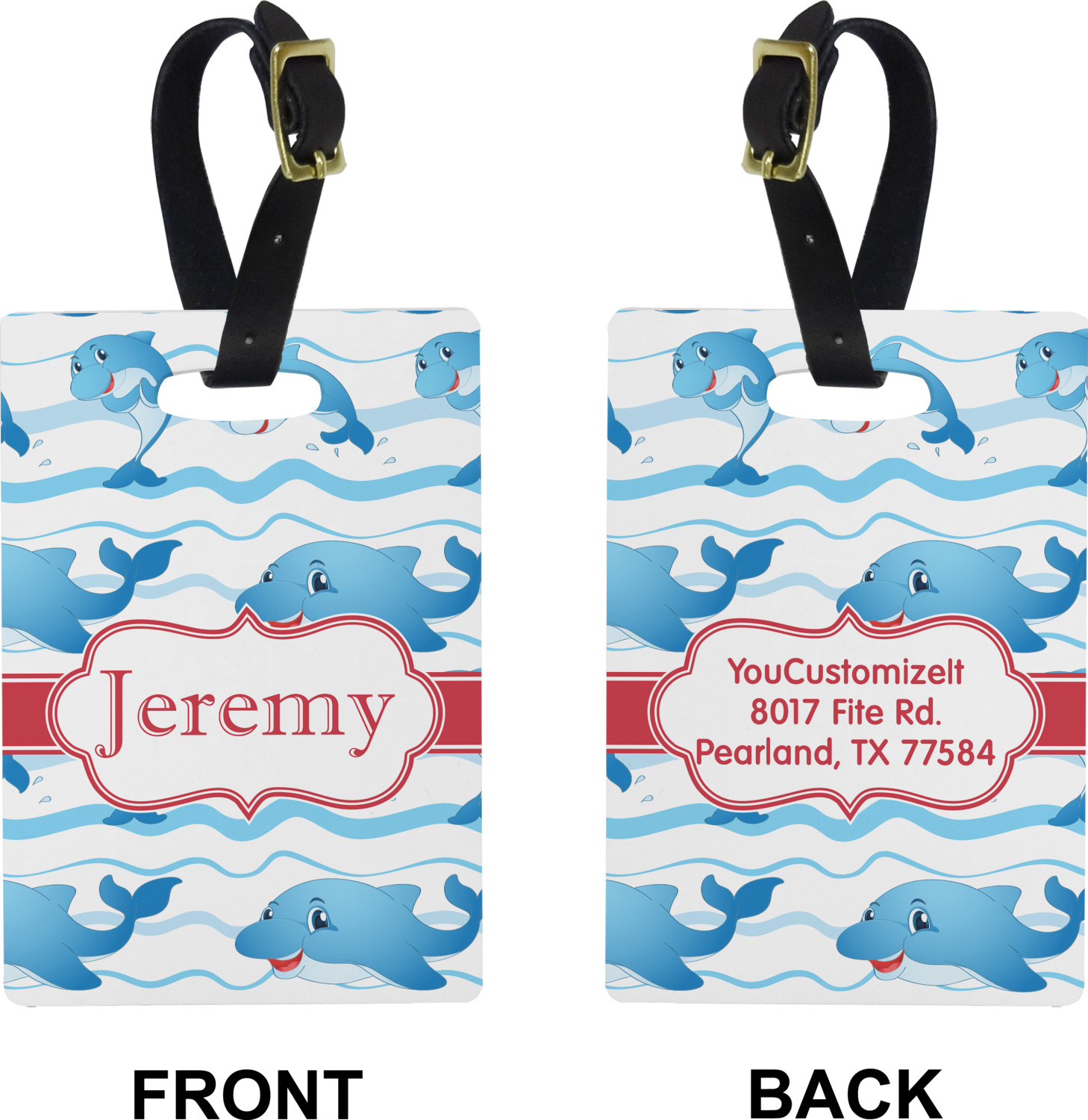 These cute luggage tags are made of a fiber-reinforced, UV-resistant plastic, making them waterproof and durable enough for both everyday use and the rugged adventures of any traveler! A leather strap with holes and a buckle is included with your purchase and can be used to attach your custom luggage tag to any suitcase, backpack, or duffel bag. You can design these travel tags as you wish; your customization will be displayed across the front, while the back will show as little or as much personal information as you want.