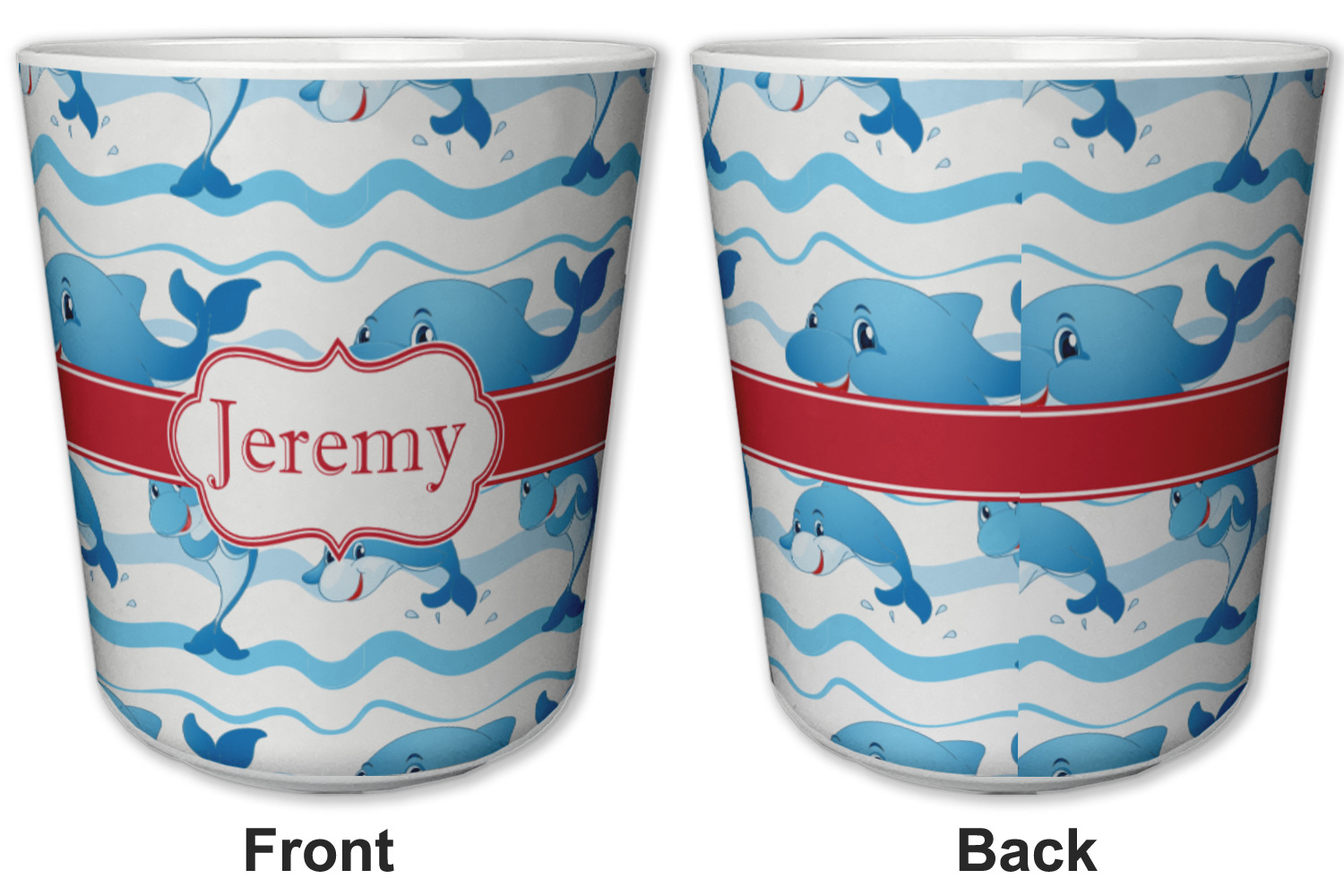 Made from a durable plastic, these tumbler cups are strong enough to withstand daily use and are perfect for young children. Each of these personalized plastic cups holds 6 ounces and measure at approximately 3" x 3" x 3.25". Place them in the bathroom as a rinsing cup, or give them to your kids during mealtimes. These 6 oz. plastic cups are BPA free, microwave and dishwasher safe, for your convenience. Your personalized design is displayed across the entire outside of this cup, while the inside is white in color to make your customization really stand out.
