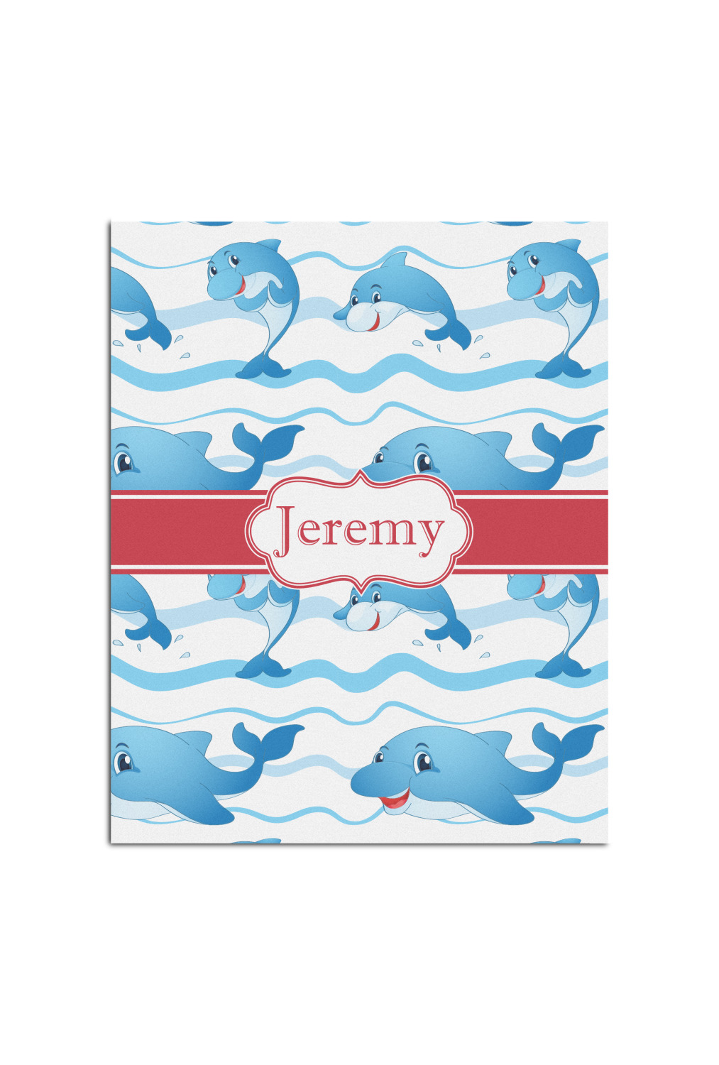 Who doesn't get excited when they see dolphins on the horizons? This design features a bunch of cute, smiling dolphins as they splash through the sea. Use to reminiscence a much missed vacation, or even just to spice up a boring summer day. Personalize by adding your kid's name!