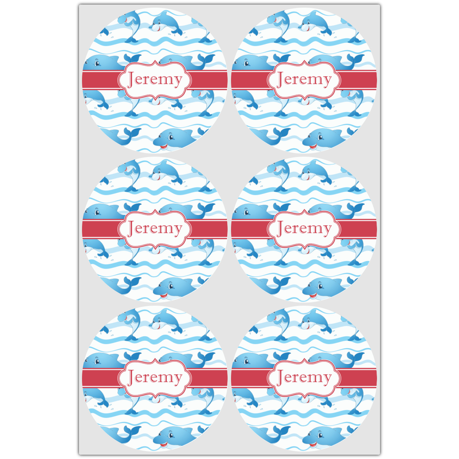 Who doesn't get excited when they see dolphins on the horizons? This design features a bunch of cute, smiling dolphins as they splash through the sea. Use to reminiscence a much missed vacation, or even just to spice up a boring summer day. Personalize by adding your kid's name!