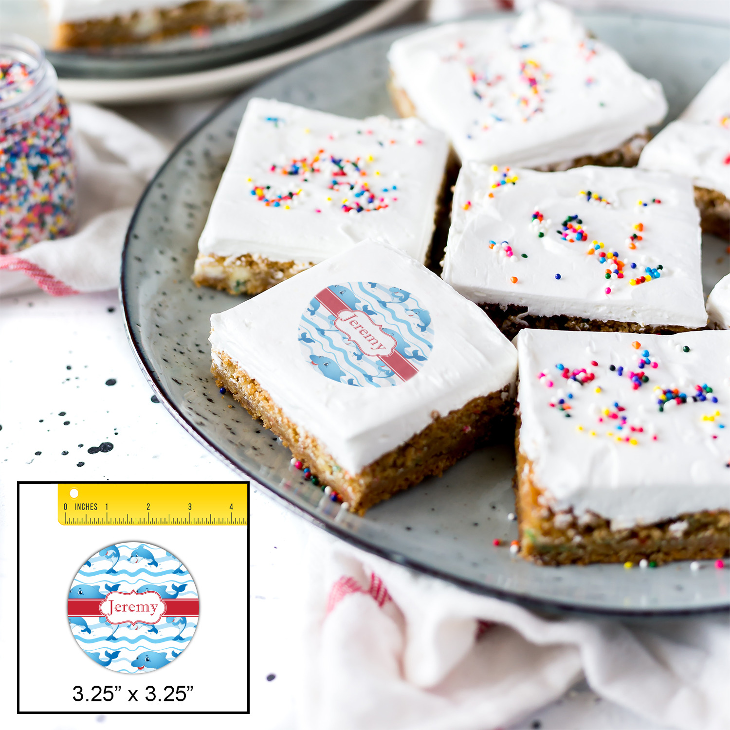Your customized cookie toppers can be placed on top of any dessert with an icing top.The icing helps adhere the cookie topper to the dessert.