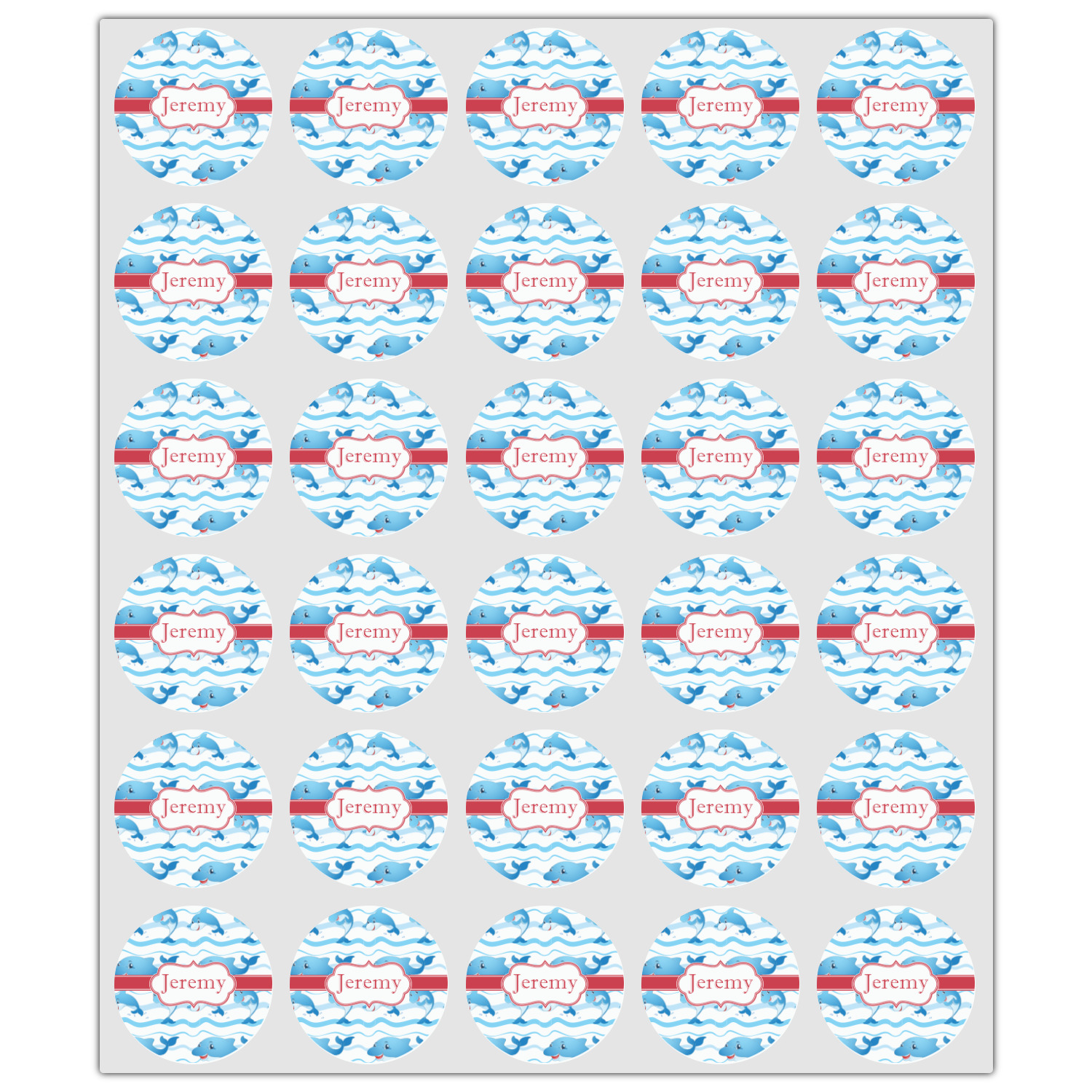 Who doesn't get excited when they see dolphins on the horizons? This design features a bunch of cute, smiling dolphins as they splash through the sea. Use to reminiscence a much missed vacation, or even just to spice up a boring summer day. Personalize by adding your kid's name!
