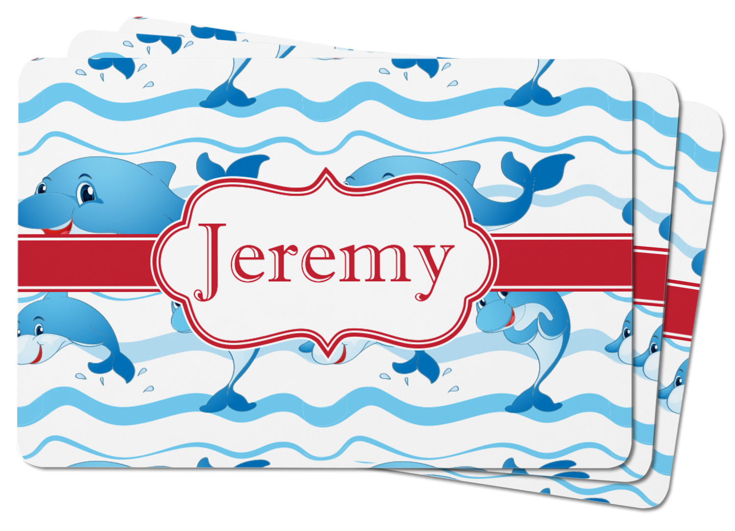 Who doesn't get excited when they see dolphins on the horizons? This design features a bunch of cute, smiling dolphins as they splash through the sea. Use to reminiscence a much missed vacation, or even just to spice up a boring summer day. Personalize by adding your kid's name!