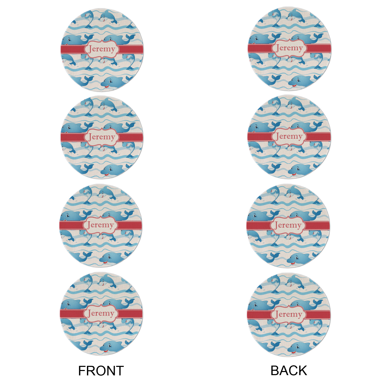 Who doesn't get excited when they see dolphins on the horizons? This design features a bunch of cute, smiling dolphins as they splash through the sea. Use to reminiscence a much missed vacation, or even just to spice up a boring summer day. Personalize by adding your kid's name!