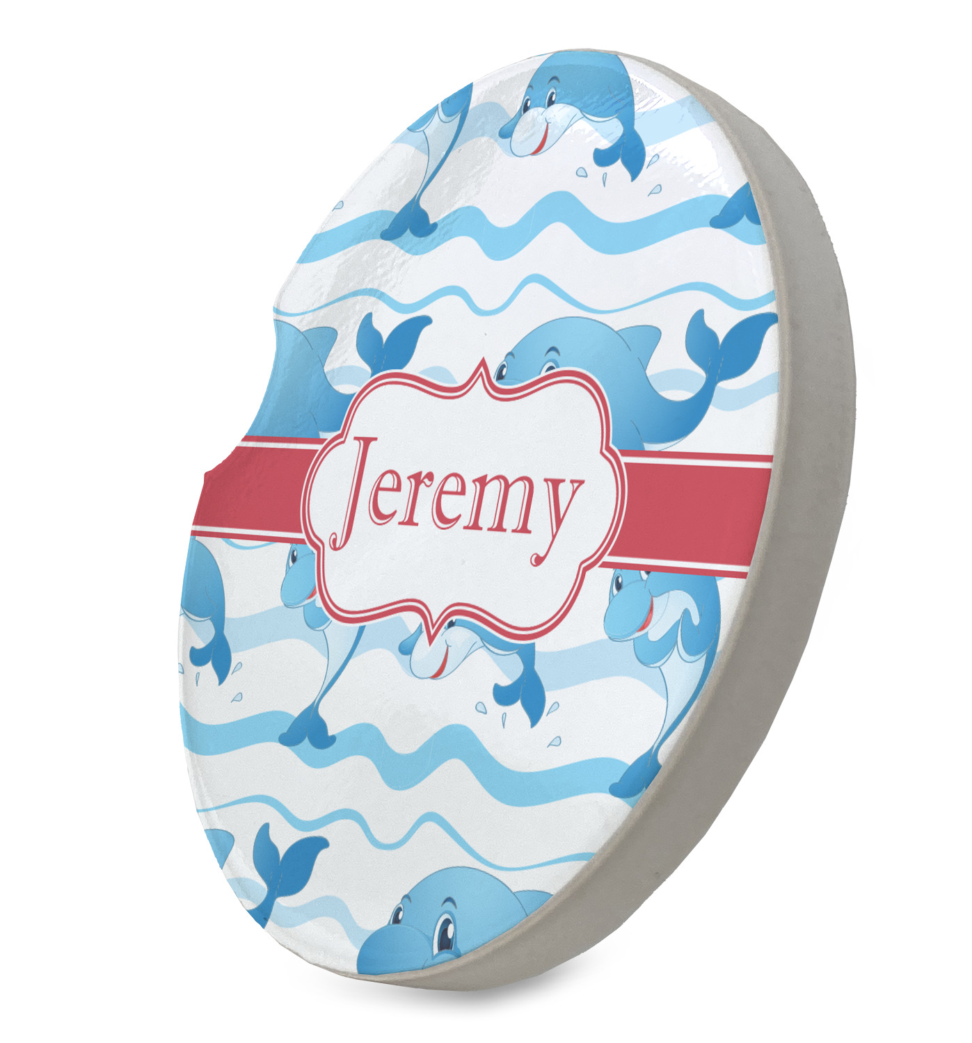 Who doesn't get excited when they see dolphins on the horizons? This design features a bunch of cute, smiling dolphins as they splash through the sea. Use to reminiscence a much missed vacation, or even just to spice up a boring summer day. Personalize by adding your kid's name!