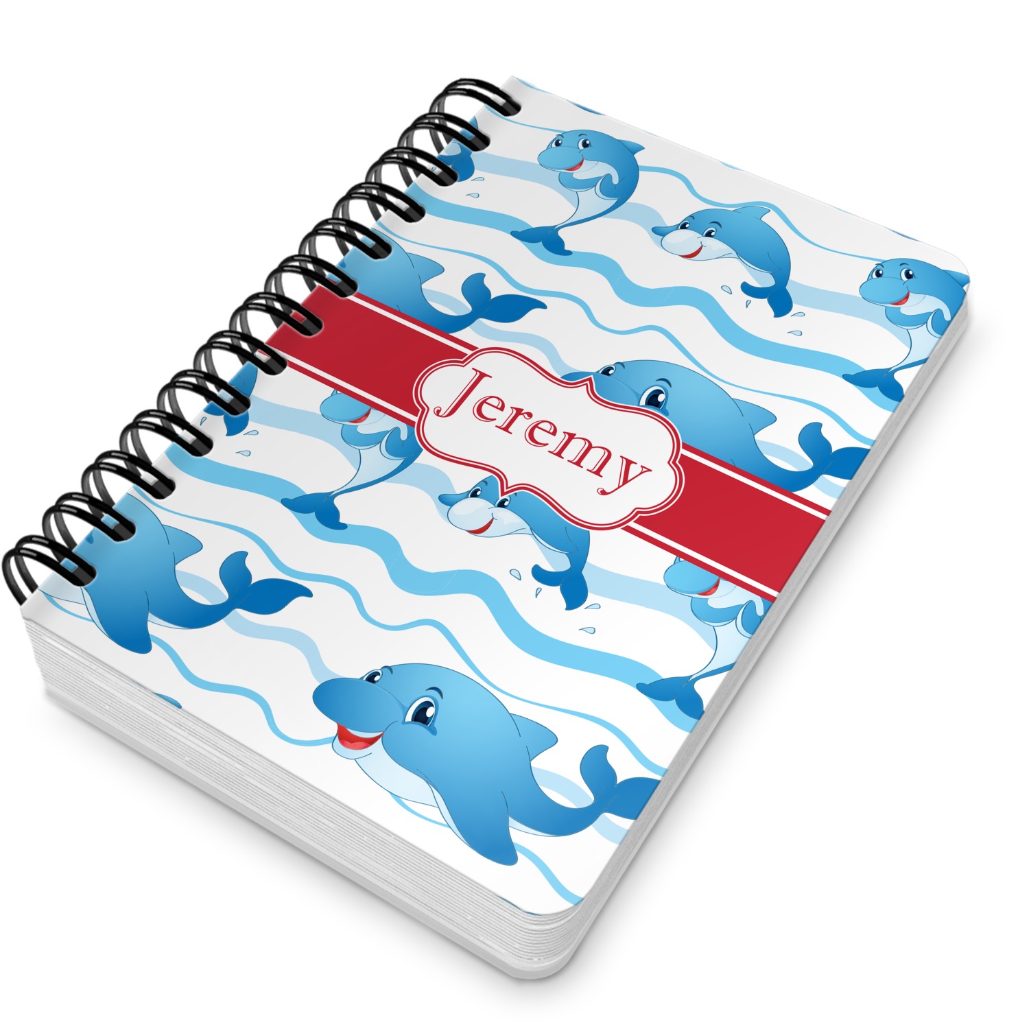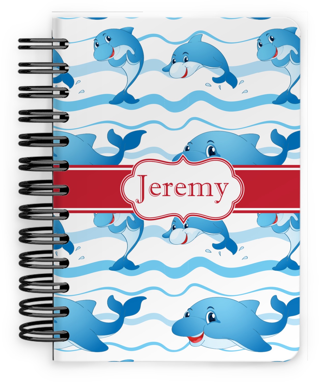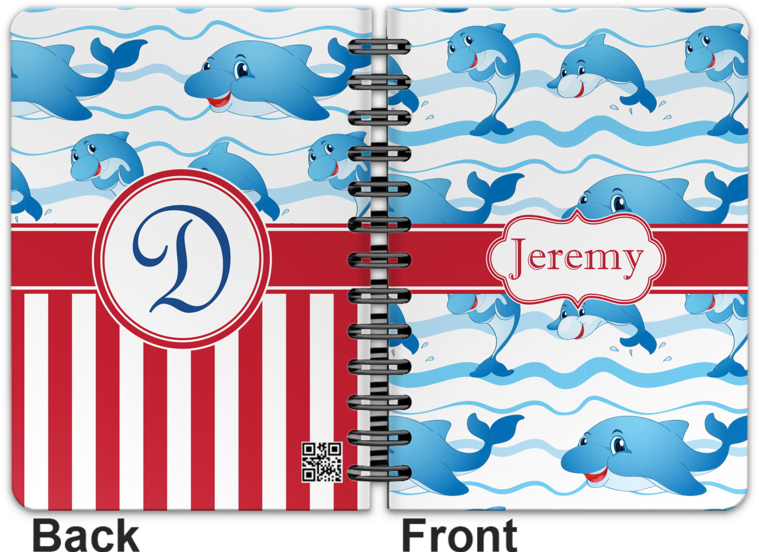 This spiral notebook includes 75 sheets of thick, ruled paper. The front and back of this custom notebook is made of a robust, laminate, plastic covering. We print your personalization on these two panels, underneath a glossy finish, which emphasizes the colors of your design. The two panels and the sheets of paper are held together by a sturdy, black coil. The paper within your bound notebook is perforated for easy, clean tearing.