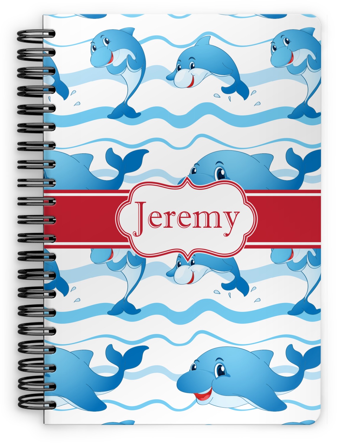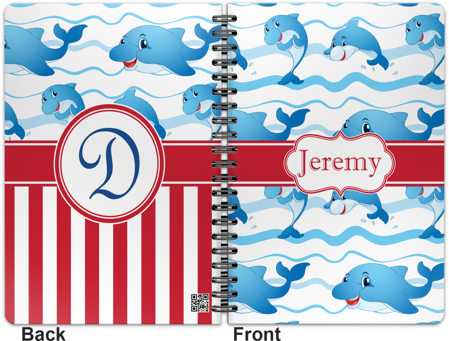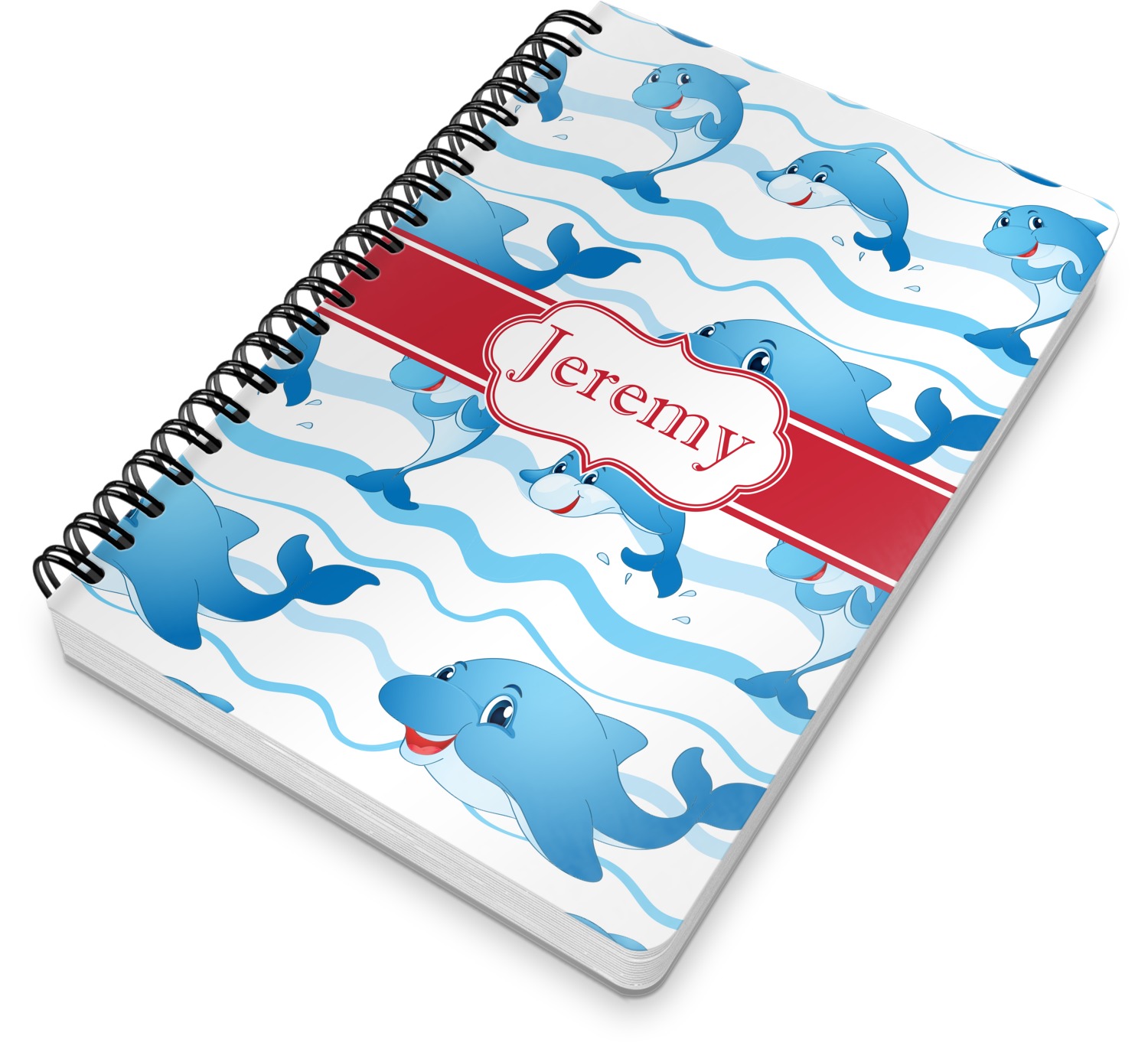 This spiral notebook includes 75 sheets of thick, ruled paper. The front and back of this custom notebook is made of a robust, laminate, plastic covering. We print your personalization on these two panels, underneath a glossy finish, which emphasizes the colors of your design. The two panels and the sheets of paper are held together by a sturdy, black coil. The paper within your bound notebook is perforated for easy, clean tearing.