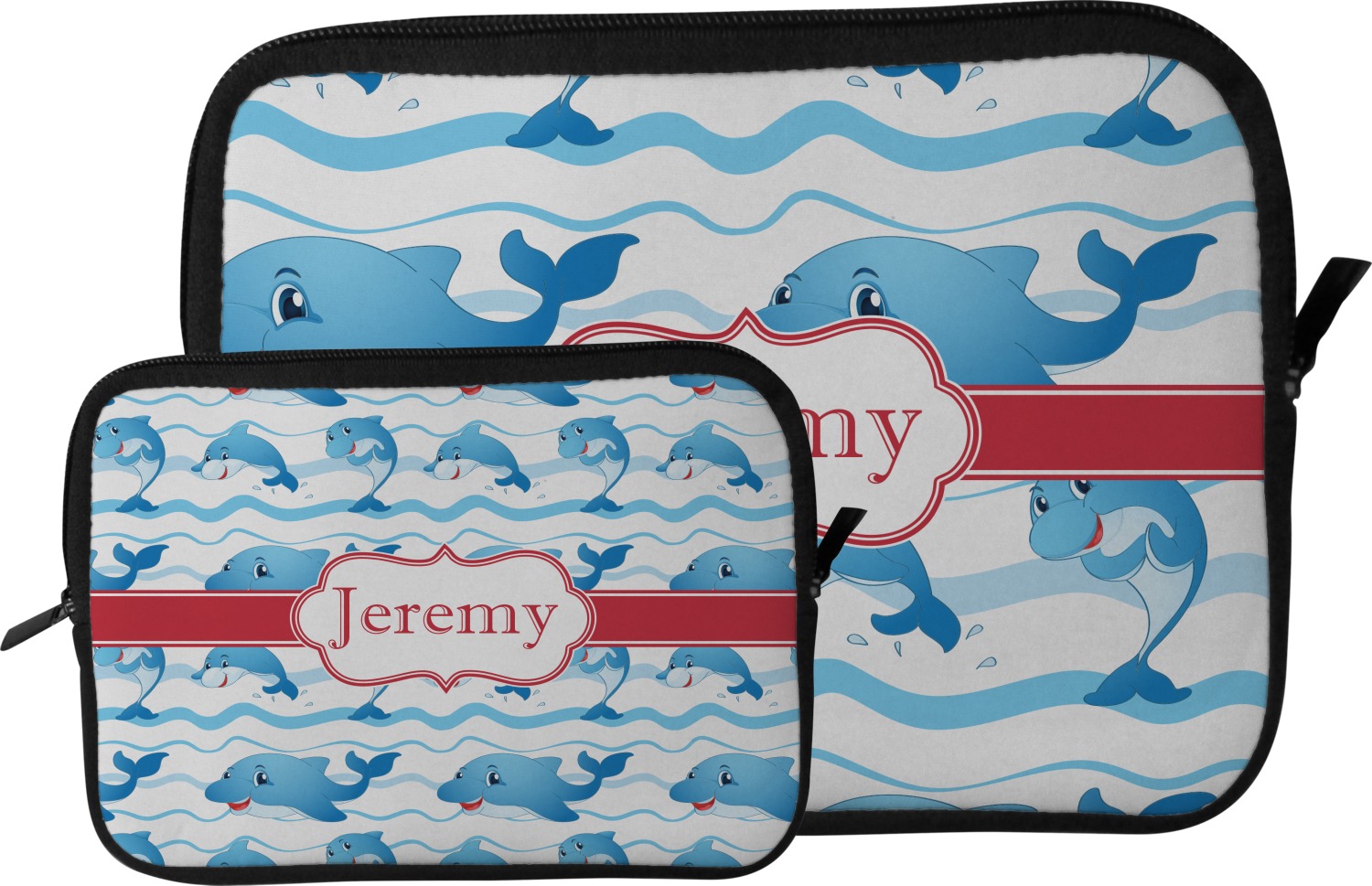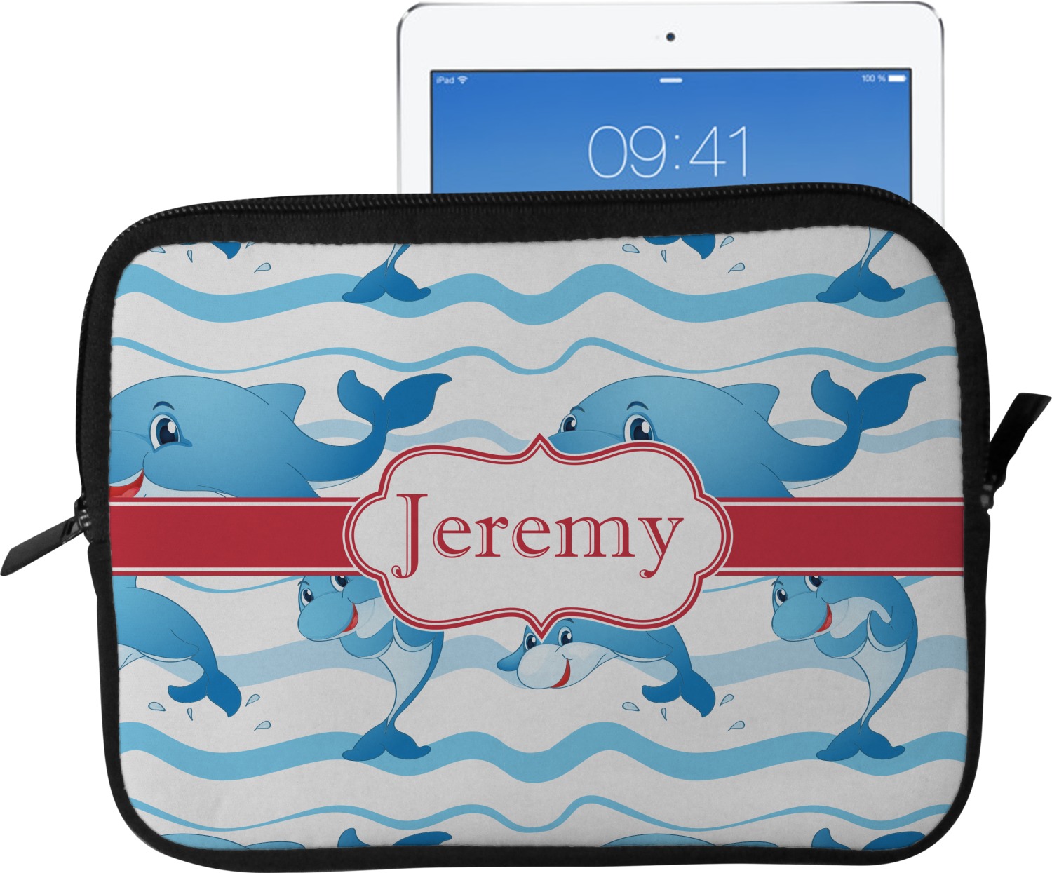 These tablet covers are fabricated from a water-resistant neoprene, and feature a zipper at its top for easy access to your device. The supple, cushioned nature of the neoprene will protect your tablet from the mishaps of daily life. Your personalized design is printed on the front of the I-Pad case, while the remaining sides are black in color. We provide this case in two sizes, in order to best accommodate your device. Our smaller size can fit a tablet with an 11 inch screen, while our larger sleeve is better suited for devices with approximately a 13 inch screen.